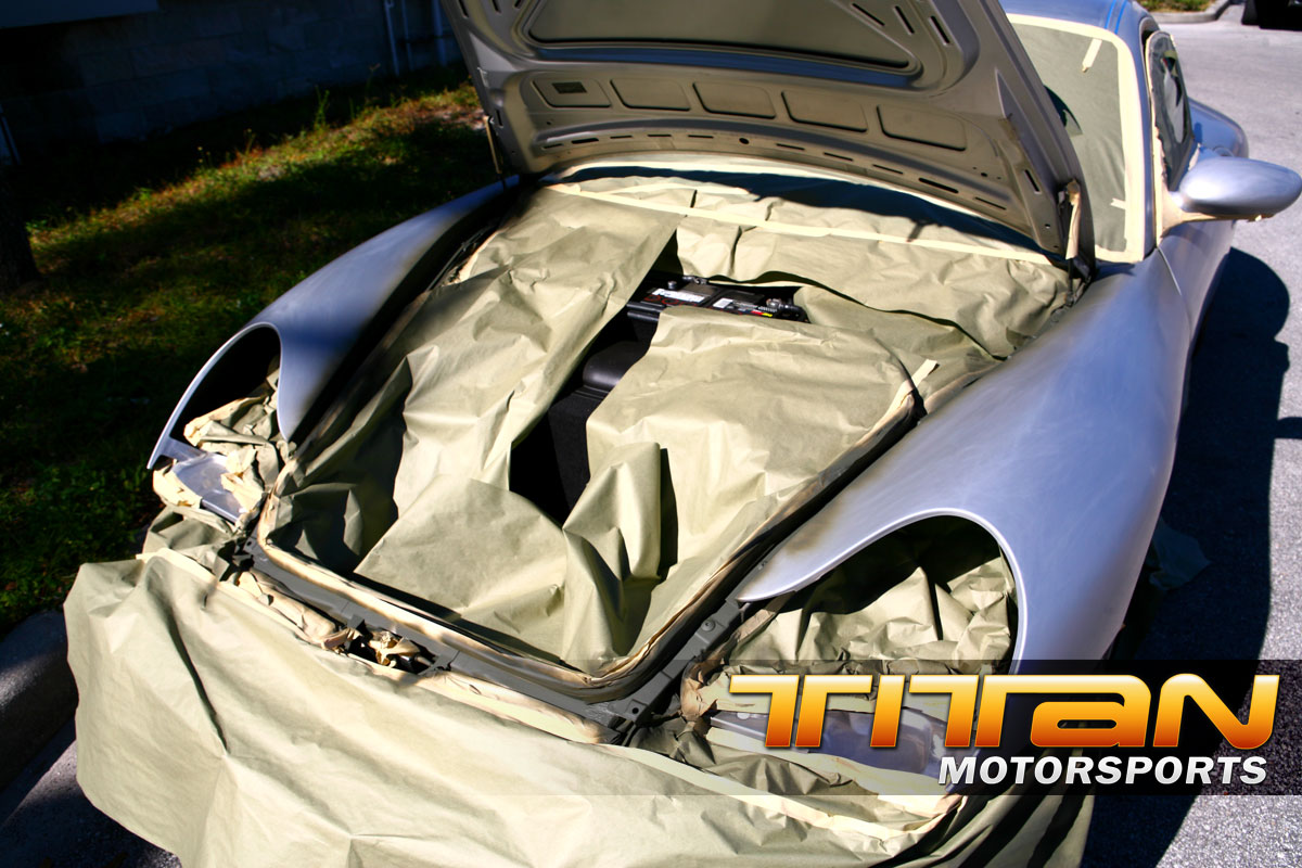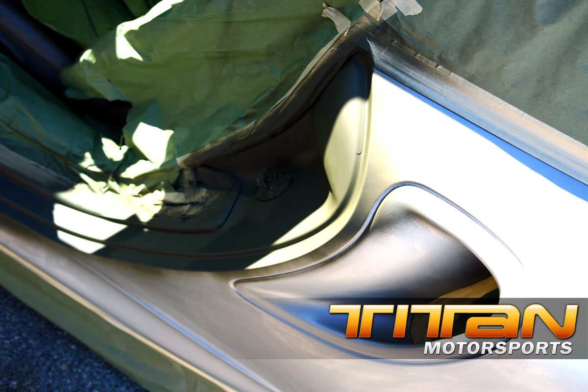 I Just returned from the SEMA show to find a good bit of progress to our Porsche Project.   We are fortunate enough to have a small body shop located behind us called Pars Autobody.    While I was away at the show they handled the wet-sanding, prepping, and painting of the door jams on the car.  If all goes as plan she’ll get a nice coat of olive drab camouflage tomorrow night, with more pictures to follow.