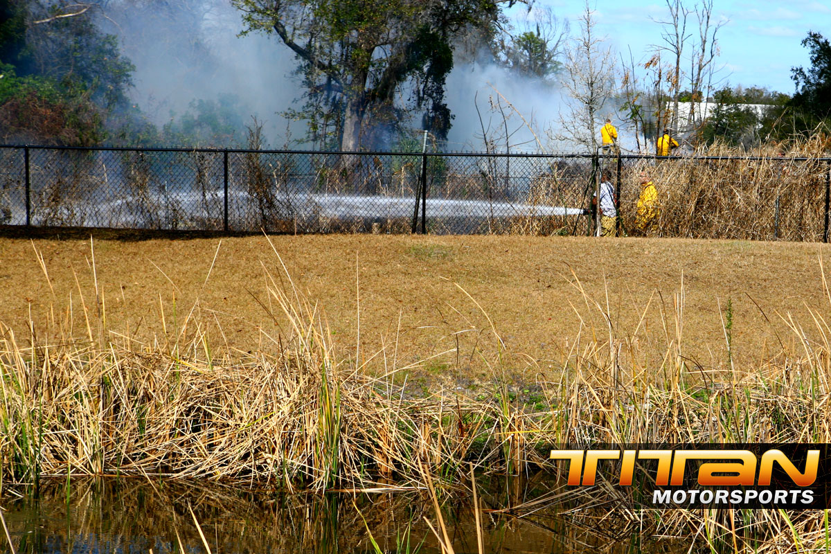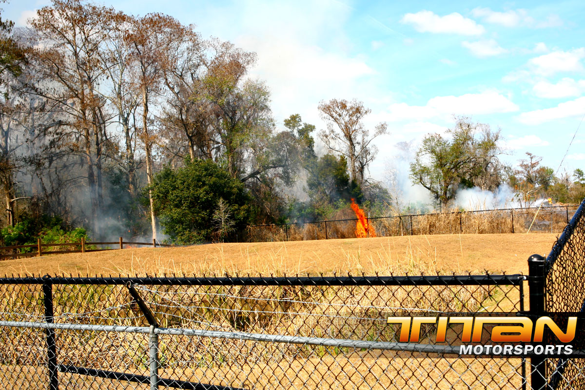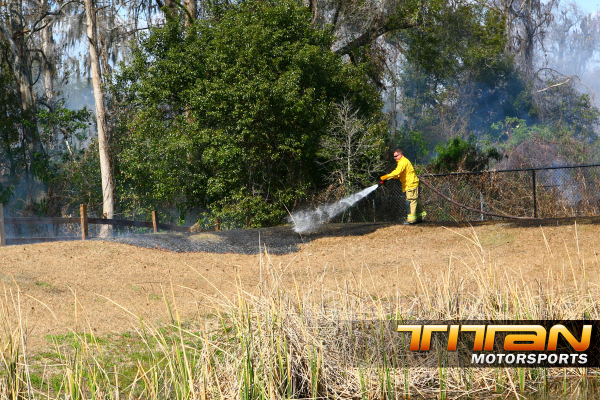 There’s always some exciting things going on around our office here in Orlando, but today it was mother nature providing the excitement. Brett was working on our Scion chassis cars and noticed a big of smoke from behind the building. After further investigation our neighboring building had a nice fire going that no one seemed to noticed. We made a call to 9-1-1, and Orange County Fire Rescue was quick to the scene to extinguish the blaze out before it got a chance to spread to the neighboring buildings.