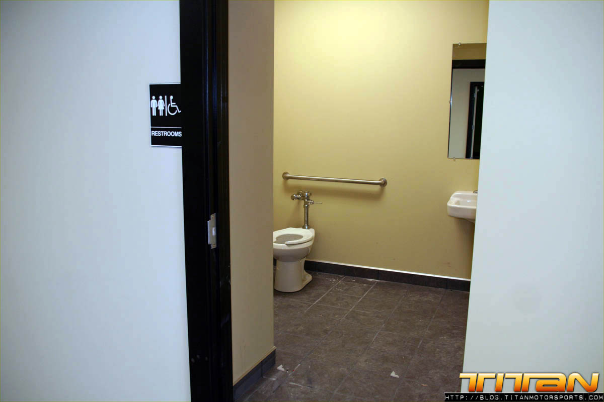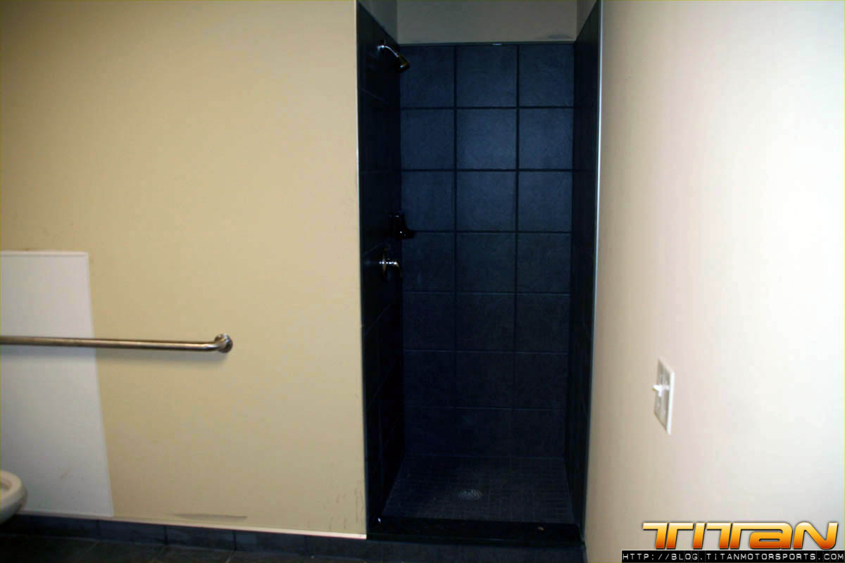 The bathrooms received slate gray tile and their appropriate fixtures.