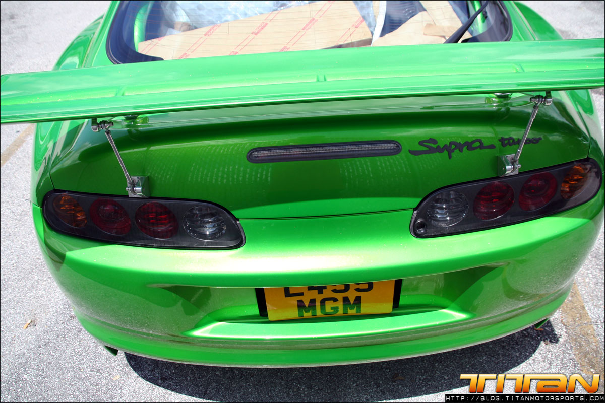 In the eyes of any car enthusiast, there can always be more. No matter how much you modify your car, and no matter how happy it makes you, there’s always that next part, that next set of wheels, or that next paint scheme. This is very much the case with our latest arrival to the Titan Motorsports holding pen. David Price has brought his beautiful green Supra all the way from the United Kingdom to have the crew at Titan give it a complete makeover. The car is being repainted (same color), will be receiving a fresh set of HRE wheels, as well as a fully built Titan motor. If this Supra was mean and green before, it’s going to be Bruce Banner Bad-Ass when we are done with it. We will be posting pictures of the entire build, so stay tuned for frequent updates.