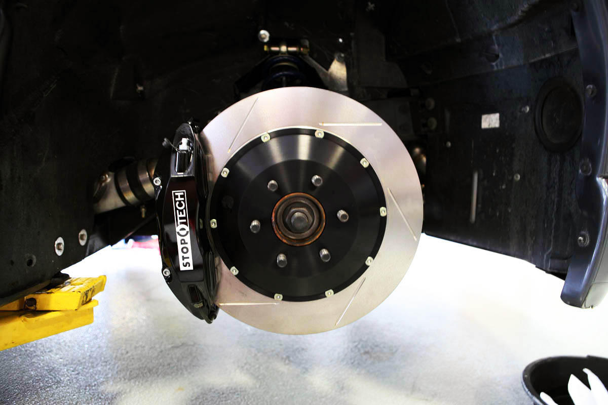 We installed a Stoptech ” Front Big Brake kit which fits nicely behind the 18″ HRE’s on the car, this package will also work with the factory 18″ wheel as well. Stoptech Big Brake kits come complete with their world renowned ST 40 4-piston calipers, 355x32mm lightweight 2-piece floating rotors (in slotted or drilled), Street performance brake pads, and all hardware necessary to adapt them to your vehicle.. Grant opted for the Black calipers, however Stoptech also offers their kits in Silver, Yellow, and Blue. Titan Motorsports can also have the calipers custom painted to match your vehicle for an additional charge (this upgrade is not available directly through Soptech). We finished the upgrade off with Motul RBF600 high temperature fluid, and made sure the proper brake bedding procedures where completed to ensure no pad deposits were left on the rotors..