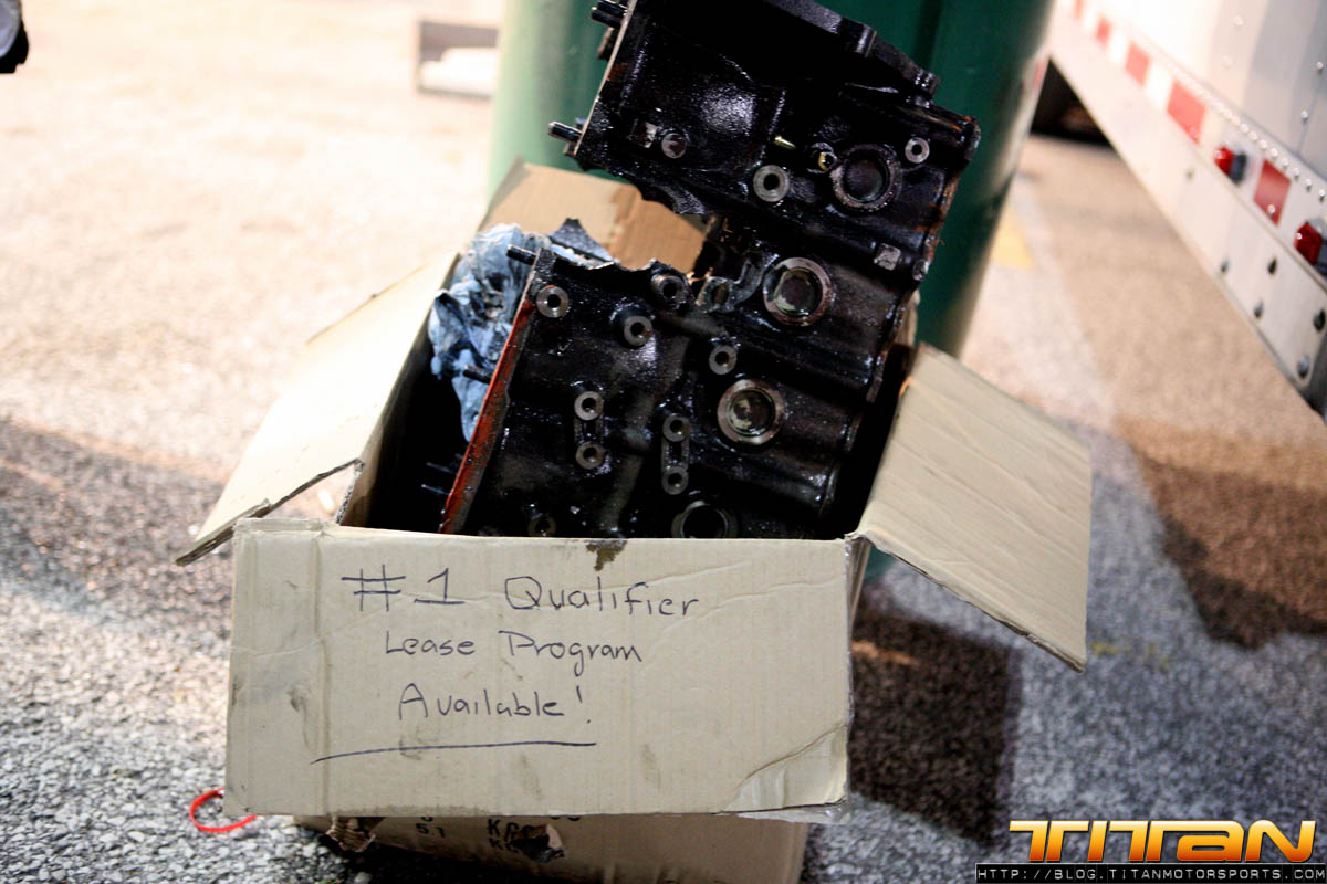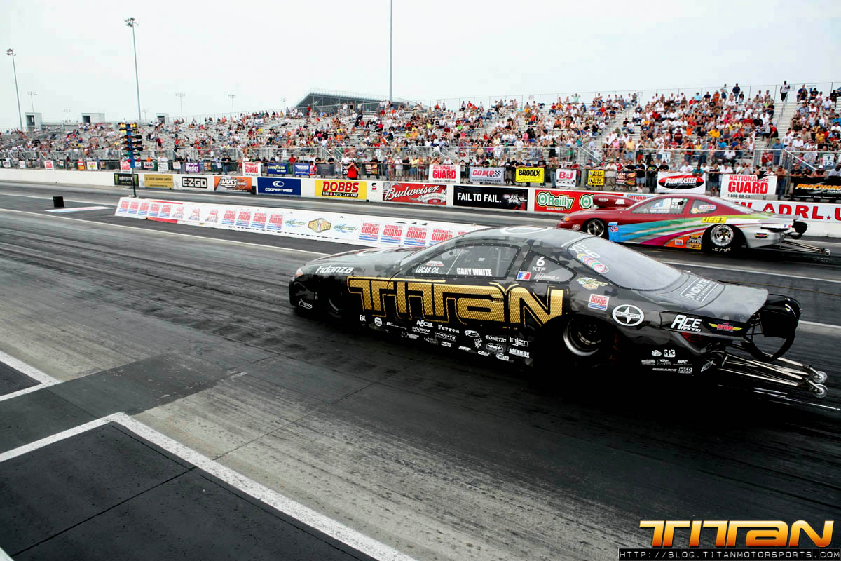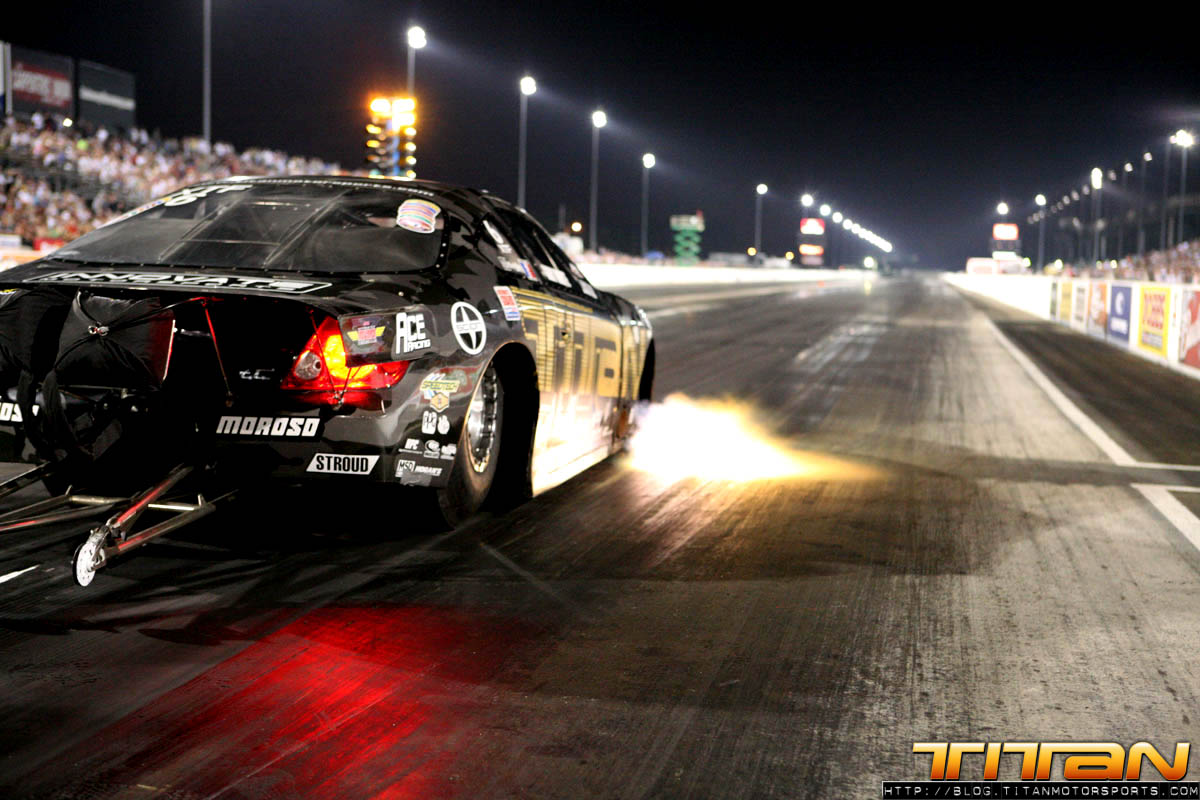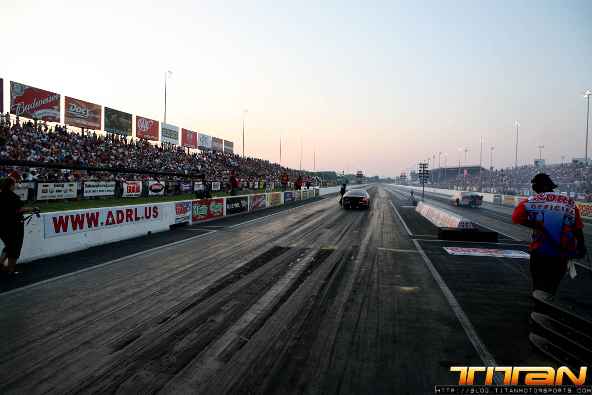 It’s been another exciting Titan Motorsports/ADRL weekend. We raced this weekend’s ADRL Hardees’s Gateway Drags II, in Madison Illinois, and what a race it was. In the first round of qualifying, Gary and the Titan Scion kicked it off with a bang, putting down a strong 4.063 @ 176.28 mph, before engine failure. Even though this run was good enough to grab the # 1 qualifying position, Friday night’s indent was just the beginning of Titans adversity-filled weekend.