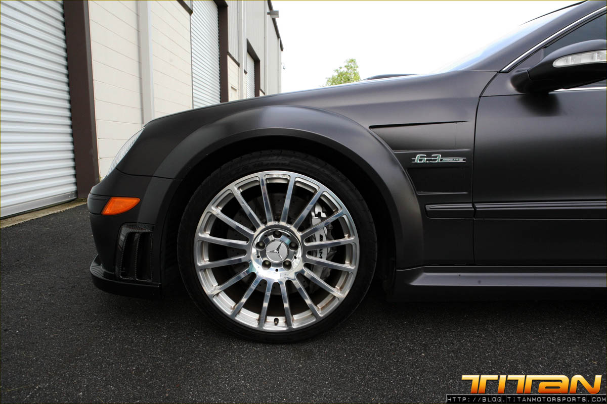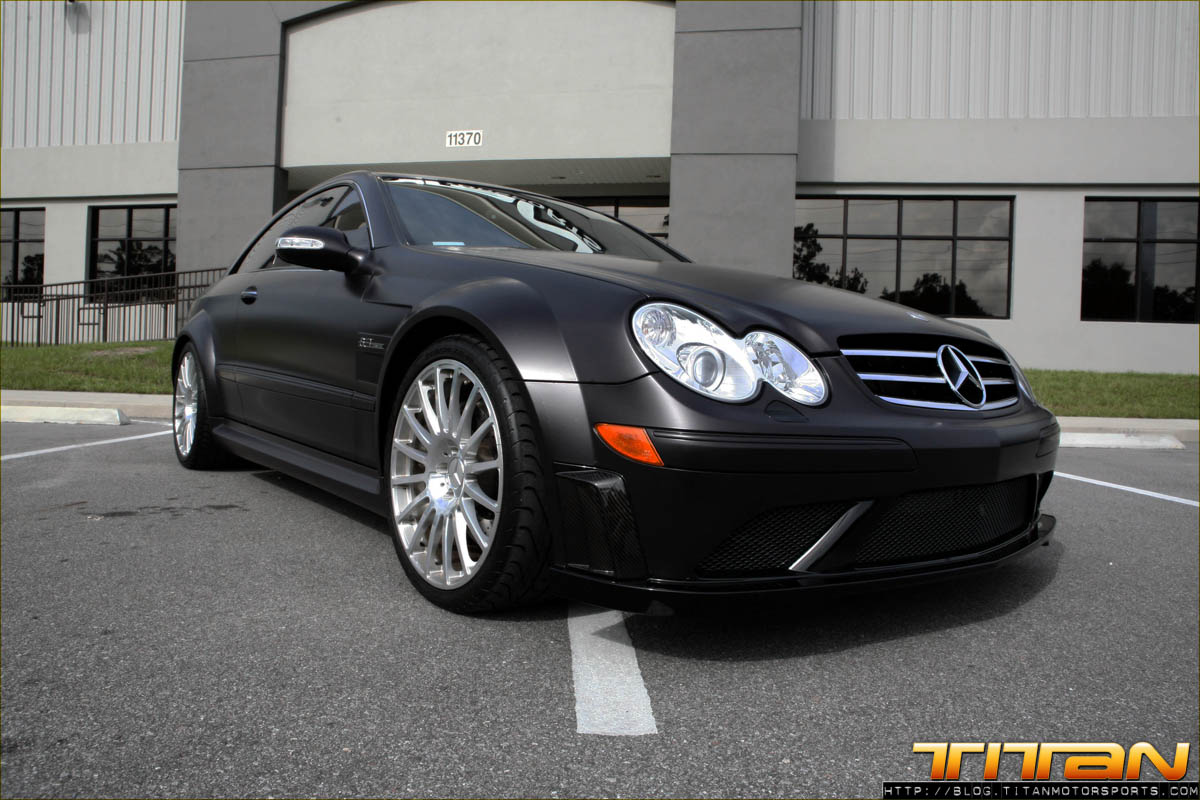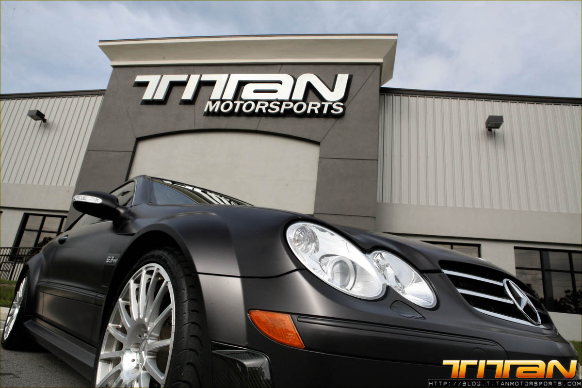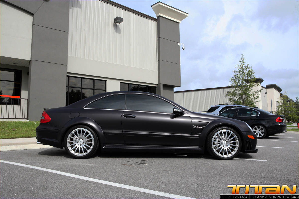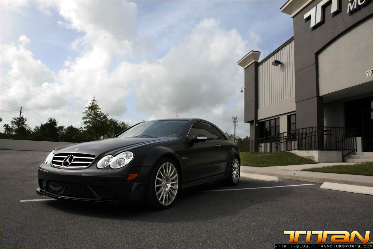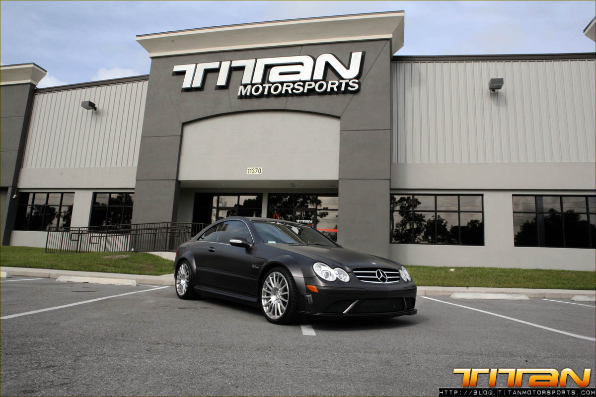 This morning we had the pleasure of picking up this beautiful CLK Black Series for a series of upgrades we will be installing here at Titan Motorsports. The car was recently wrapped in Matte black vinyl which looks absolutely stunning in person. While this treatment has gotten very popular in recent months almost to the point of saturation, this car definitely pulls the look off better than most. The car in stock form makes 465hp/500tq, however we’re expecting quite a bit more after installing headers/intake/exhaust and an RennTech ECU reflash. The 7speed gearbox makes driving in traffic anything but a chore, while providing smooth crisp shifts during performance driving. A custom cut set of DPE’s is on the way for test fitment complete with matte black center, once we confirm they fit we will be installing them on the vehicle and lowering the improve the vehicles stance.