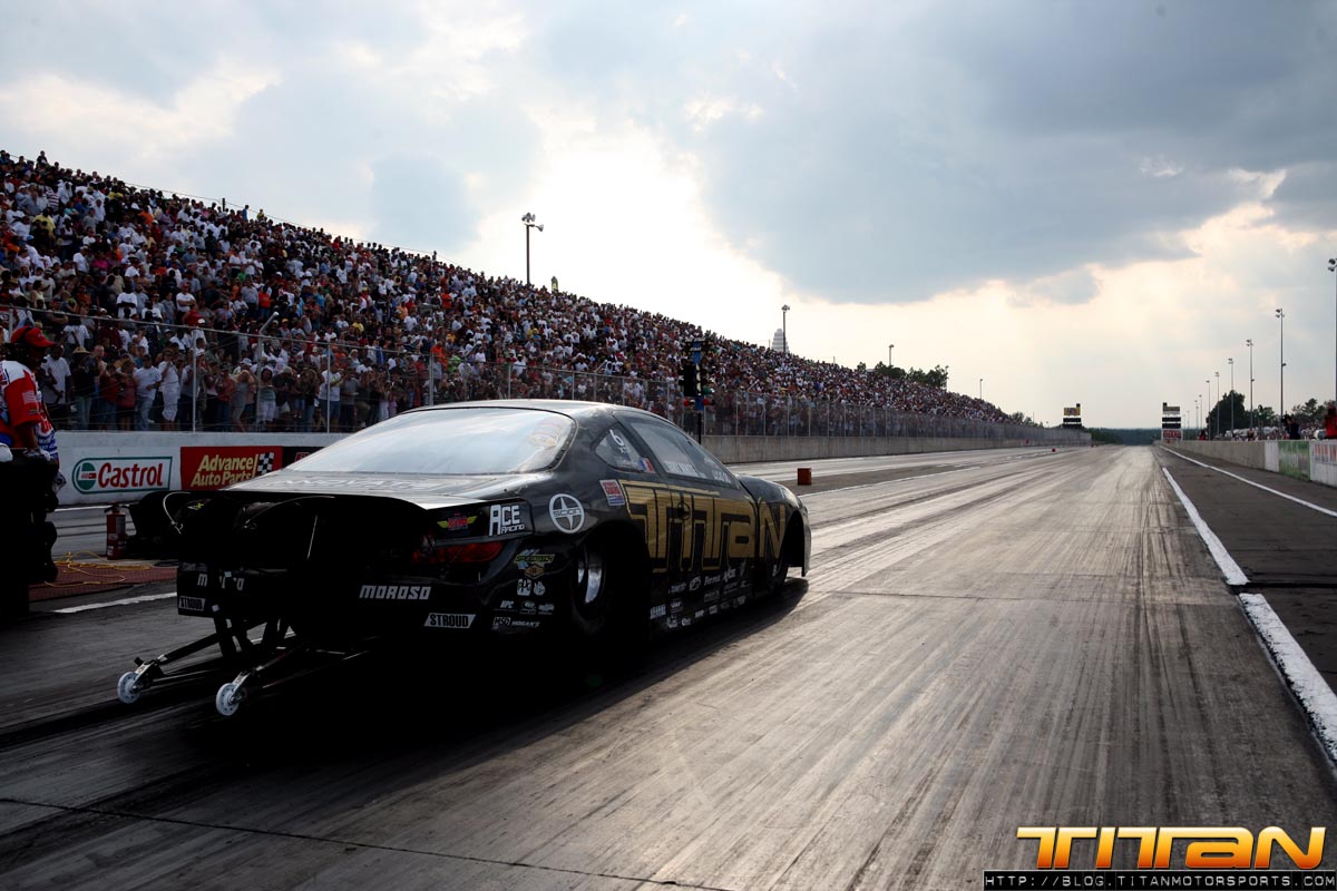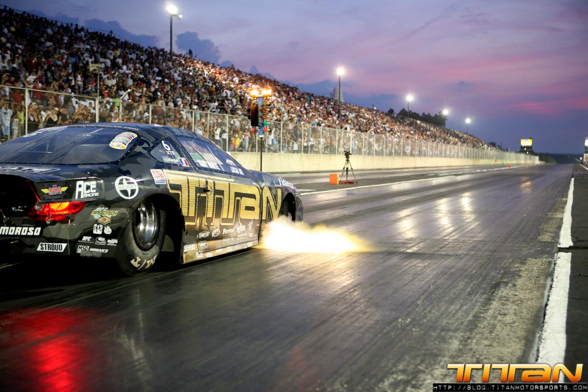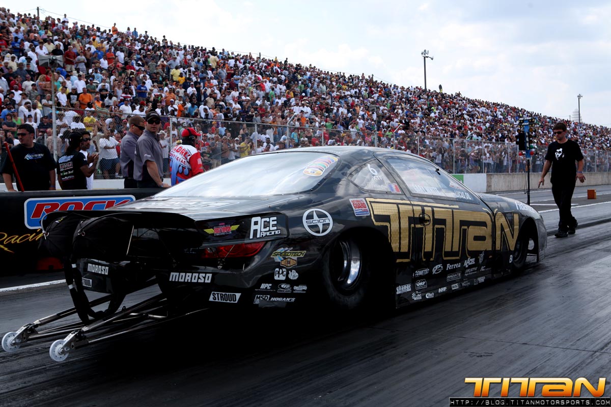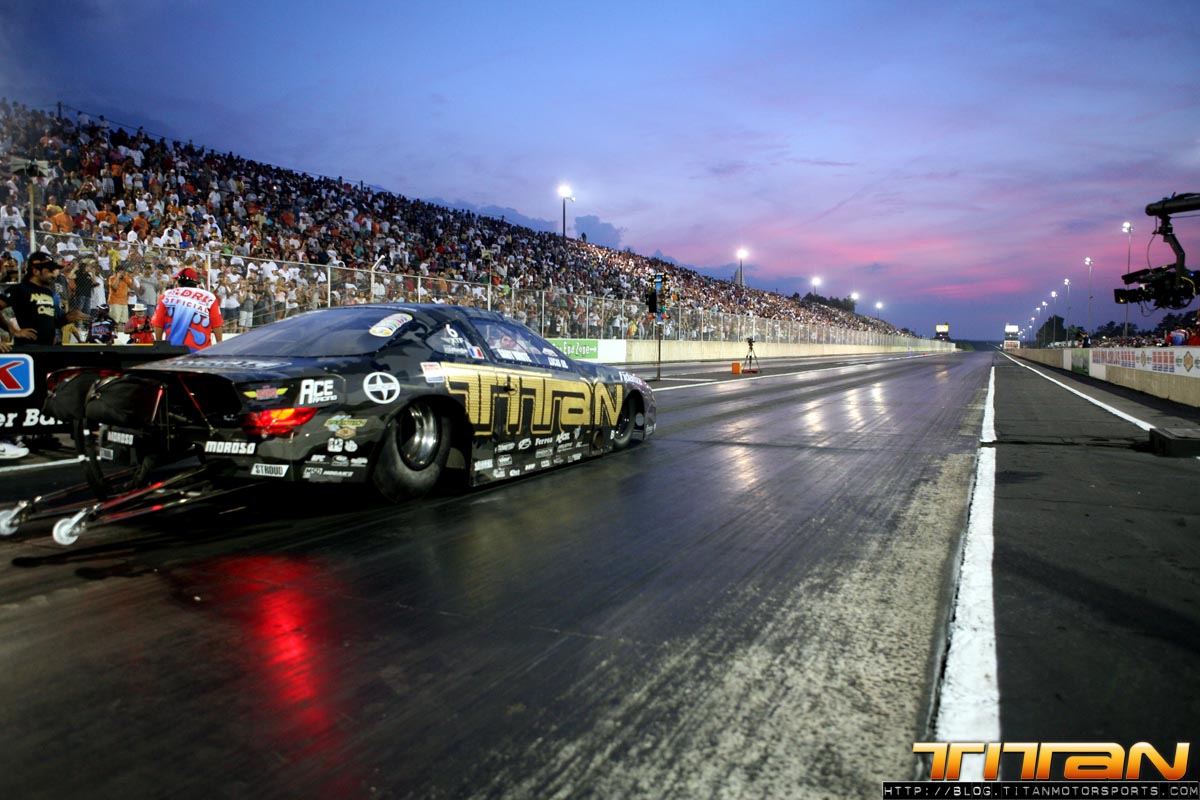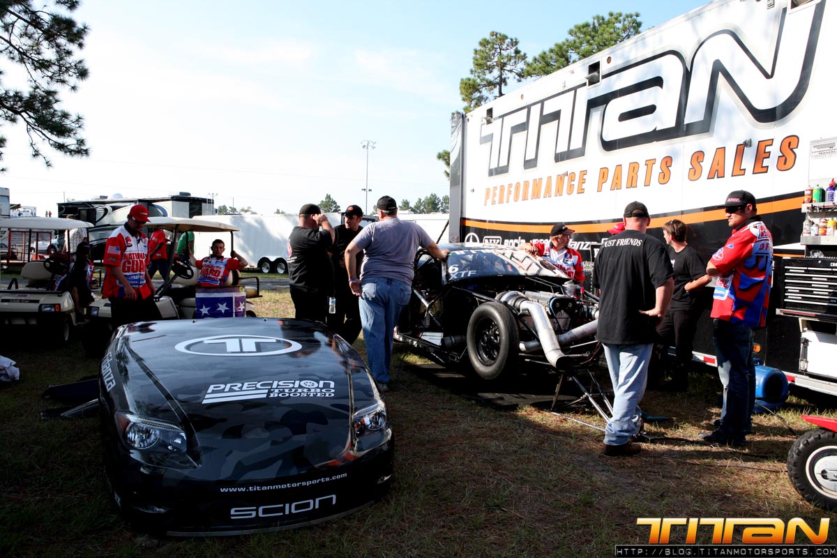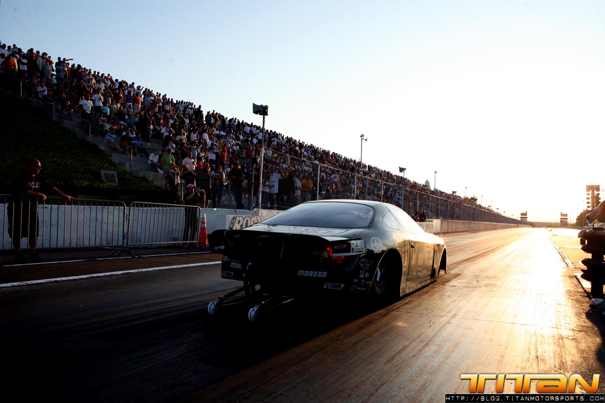 What an incredible weekend of racing! Not only was it a record crowd, but there was a great turn out of racers as well. Friday we had 2 rounds of qualifying, the first run was aborted, but the next run we were able to better our best E.T. yet, running a 4.009@181.45. This E.T. was good enough to hold the #1 qualifying spot, something that we were really looking to lock down after having qualified in the #2 seat for the last 4 events. When Saturday morning rolled around, we decided to run round #3 of qualifying to gather as much data as possible. After the run, our race team decided that it was time to put a fresh motor in so that we would be ready for eliminations. Unfortunately for us, the fresh motor had an issue in one of the cylinders, essentially making the car a 5cyl engine. With no time to spare, eliminations started, and thanks to our #1 qualifying spot, we were able to request to run in the first pair in the XTF class. We figured if we won the round we would have more time to fix the car this way, and so we did, running a 4.19 against Sandy Wilkins 4.33. The team definitely had their work cut out for them. They needed to swap the head of the motor in between elimination rounds, and had very little time to do so. But, with a little help from the rain, the event got delayed an extra 45min to an hour, and we had just enough time to make round 2 of eliminations against Joel Bayless. On this run, the car got out of shape, but Gary White’s ballsy driving lead to another W, taking the win by 0.0644 seconds (approximately 17 feet), running a 4.36@173 against Joel’s 4.41@176.