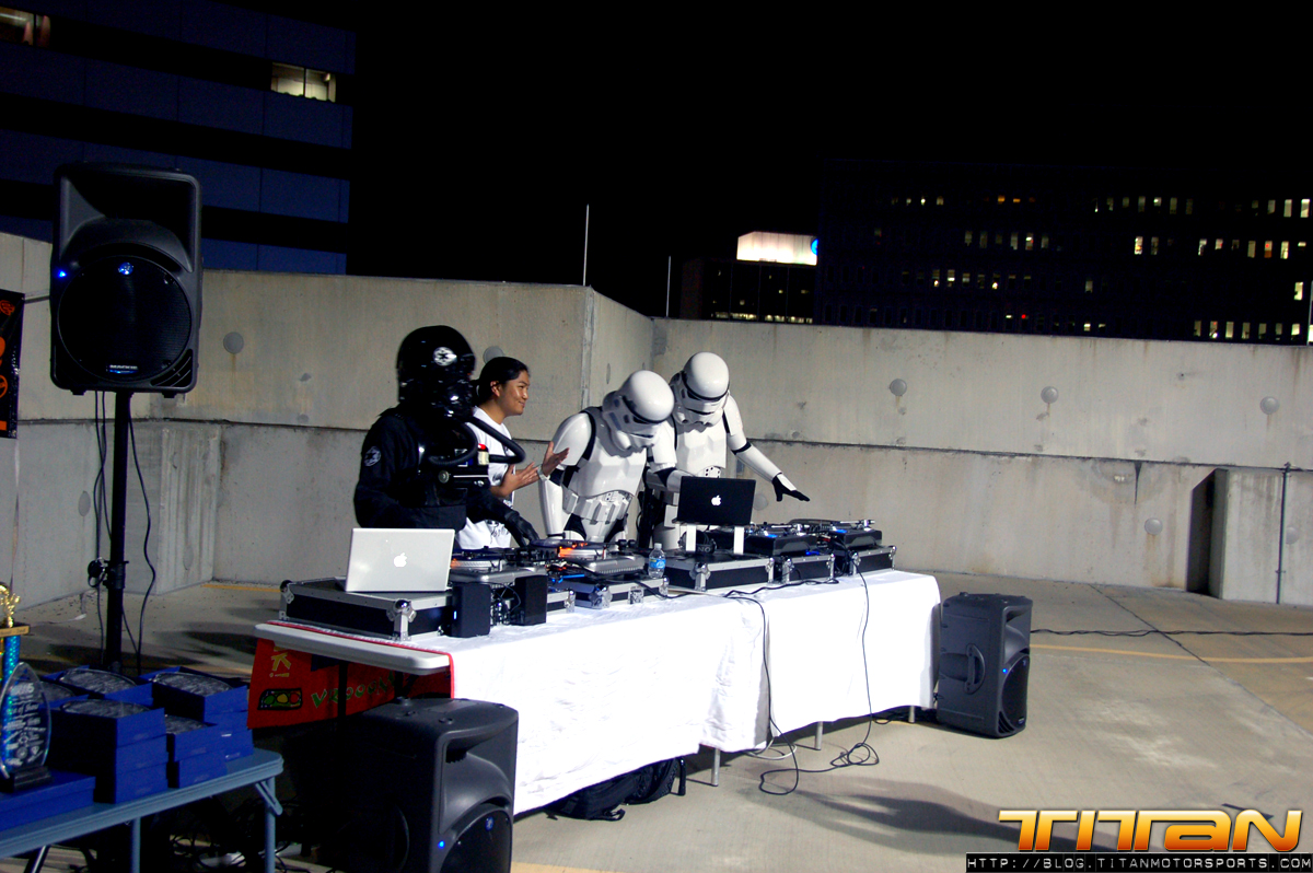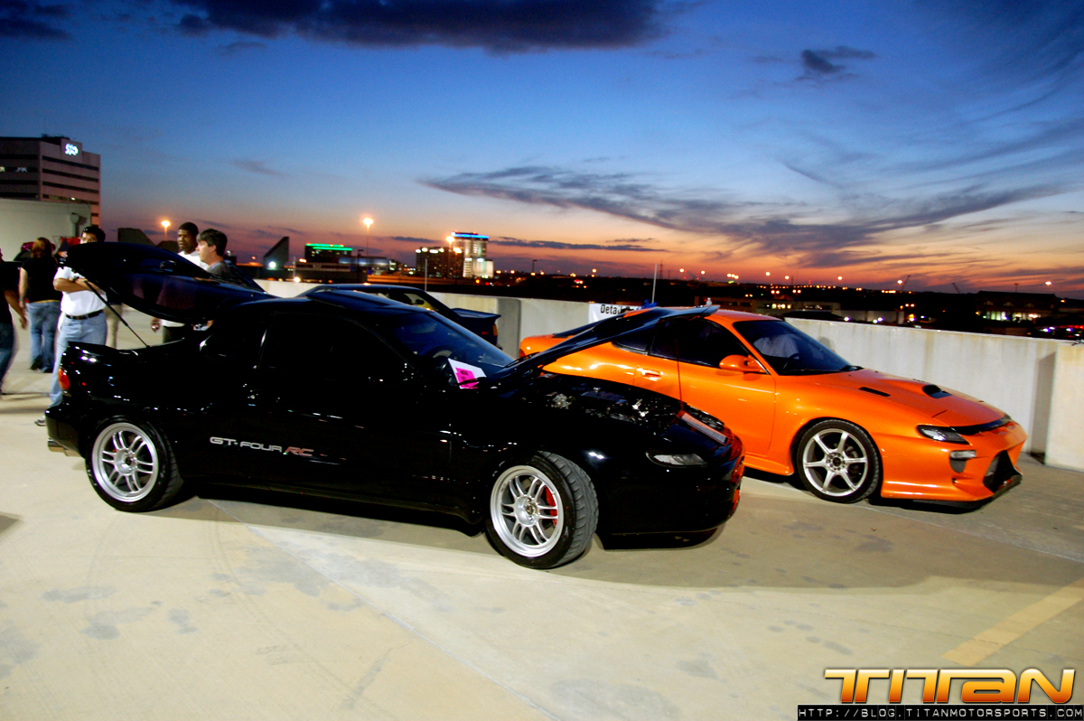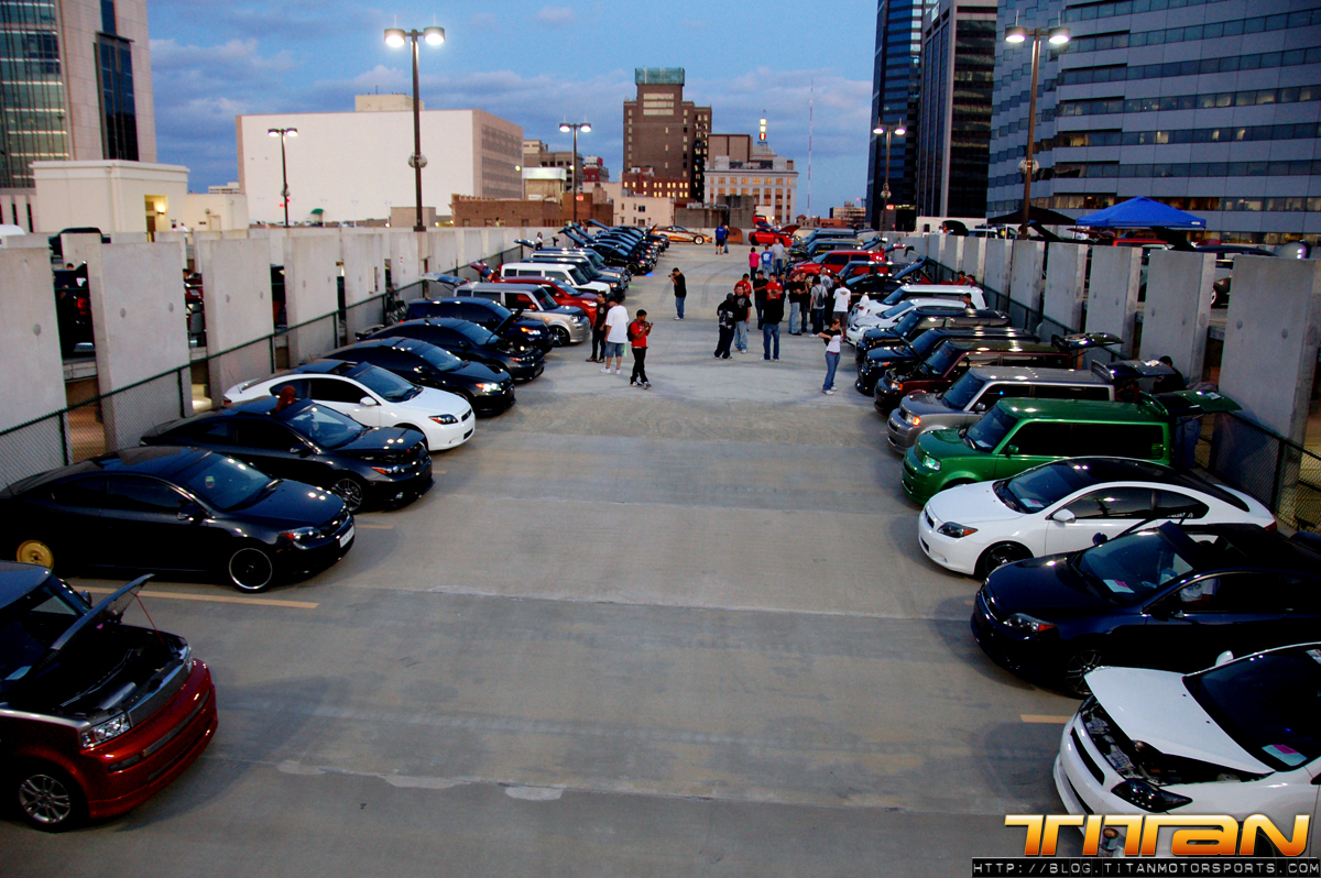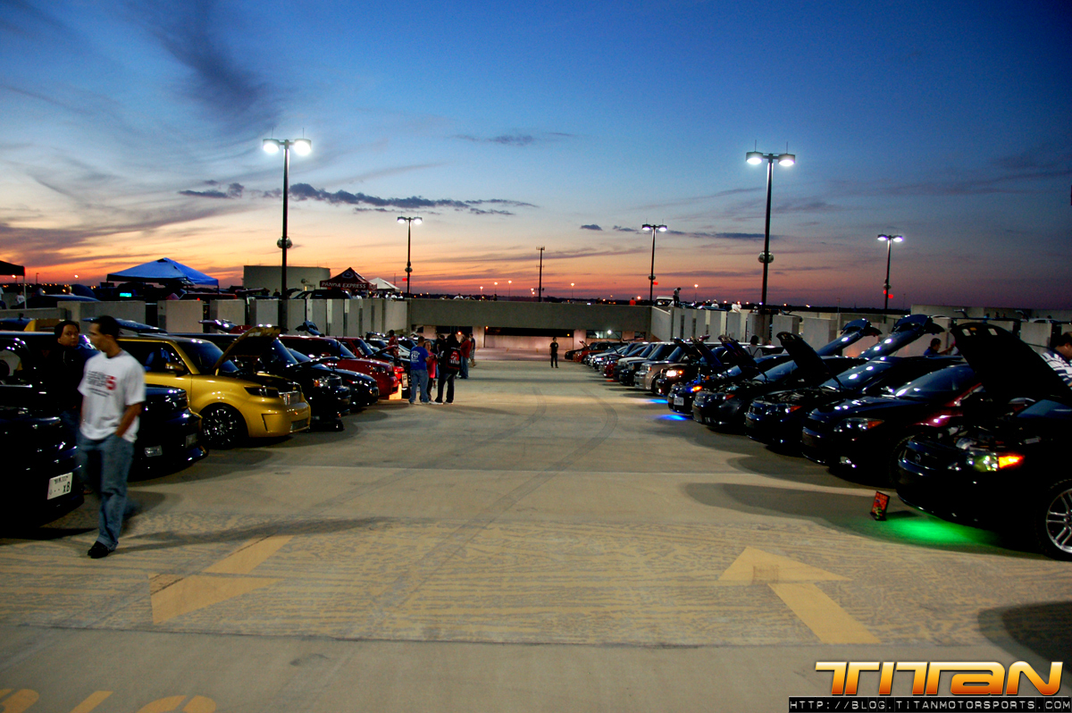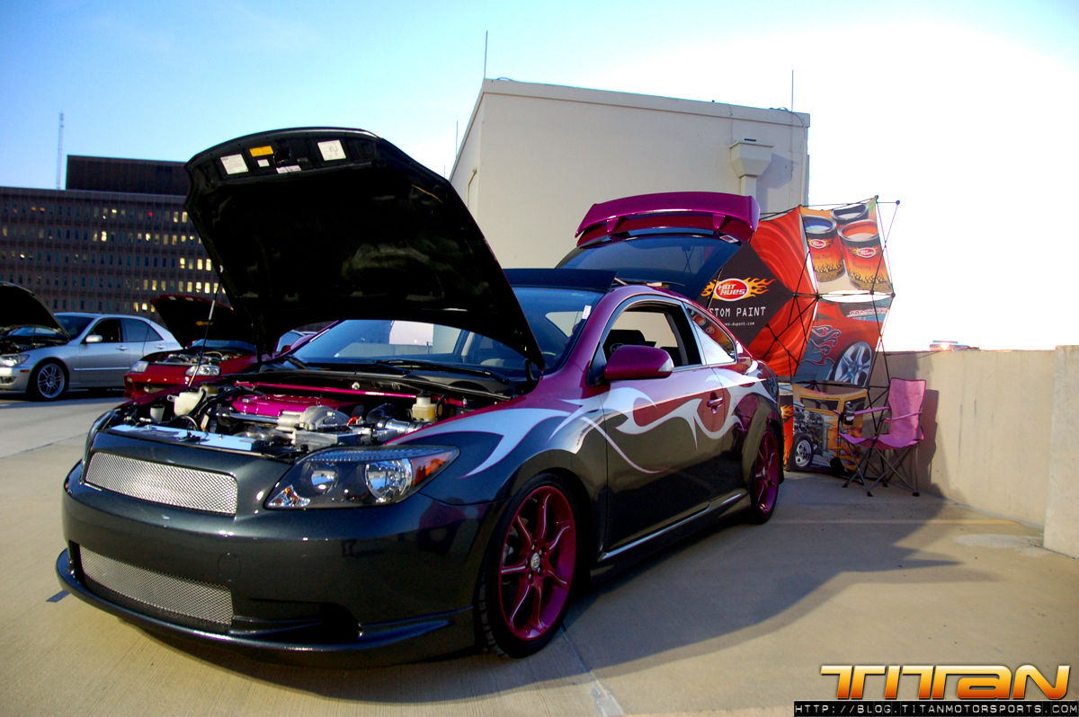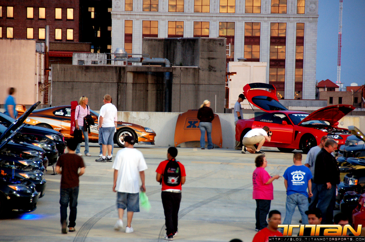 This weekend Titan was invited to attend the 5th Sibling Rivalry (SR5) show in Jacksonville, FL. What started out as a car show at a Toyota dealer is now a yearly event at a parking garage in the heart of downtown Jax. We decided to take two Supras to the event: Dr.Nicks “recovery room” TRD wide-body Supra that has been featured in both Modified magazine here in the US and Top Performance in the UAE, as well as our own copper Supra drag car. The crew of SR5 gave us a spot right in the heart of the action on the top floor of the parking garage. I have been to car shows in garages before, but never with a backdrop of a downtown skyline like we had for this event. The show got started just before dusk and went into the night. Not only did they have local DJs there, but there was a performance by the Jacksonville Jaguars Drum-Line as well and Dr. Sam Beckett. To top it all off Panda Express was at the event giving out free food. This was a great show with a really nice mix of cars, while it’s primarily Toyota, Lexus and Scion, there was a few other imports (Honda, Acura, Nissan and Volkswagen) and the style of cars was everything from VIP to all out race-cars. If you get the chance to attend a Sibling Rivalry event you should definitely check it out!