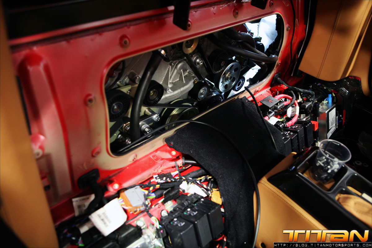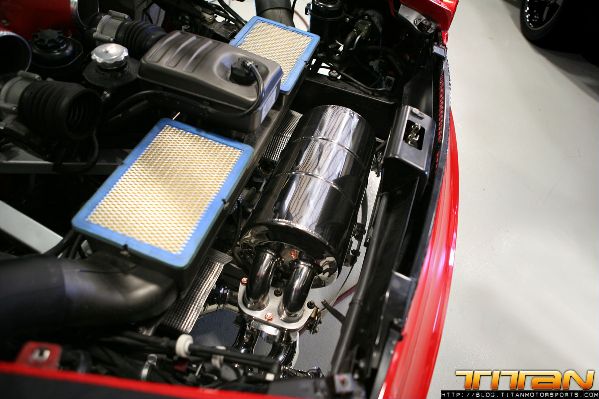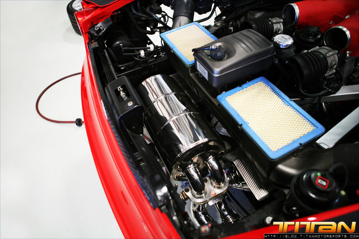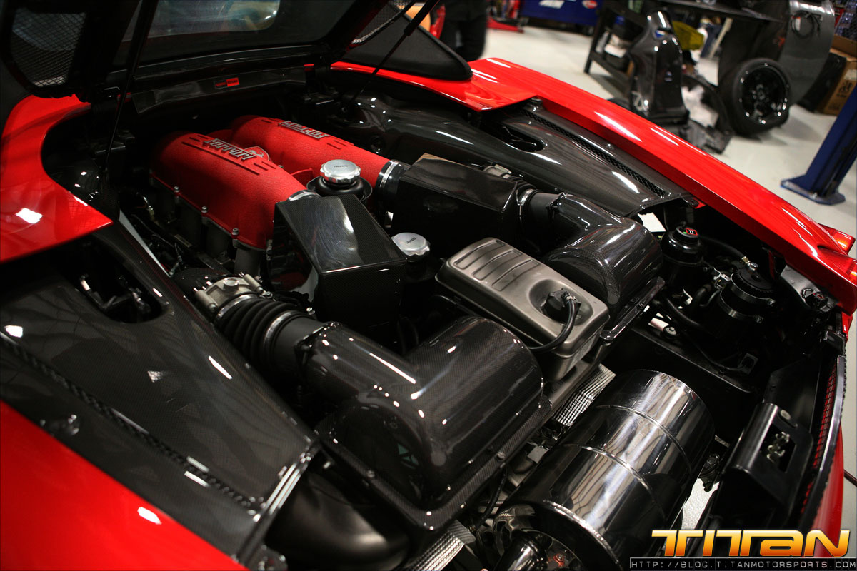 Living and operating in a major metropolitan area, seeing Ferraris and other exotics becomes a somewhat common occurrence. This particular owner wanted to make his Spyder stand out from the pack and what better way than by adding a twin supercharger kit from Novitec. The Novitec Rosso kit adds twin Rotrex Superchargers to the factory 4.3L V8, combined with Novitec engineered hardware and software upgrades the horsepower is increased to 636HP. The kit adds just as much aesthetic appeal as performance with carbon piping dress panels letting curious onlookers viewing through the F430s glass trunk lid know this isn’t your standard Ferrari. The complete kit takes less than 3 days to install and can be combined with additional suspension, brake and exterior modifications, and even a race kit for those looking to take their Ferrari to an even further level.