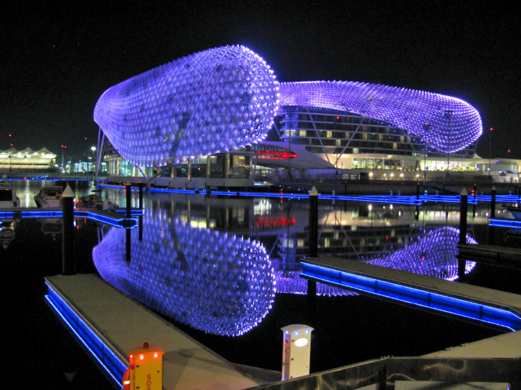 Check out F1’s newest circuit; Yas Marina Circuit. Designed as an Arabian version of Monaco, the twenty-one corner track twists through manmade Yas Island, off the Abu Dhabi coast, and passes by the marina and then through the Yas Marina Hotel. Yas Marina is the second Formula One track in the Middle East, with the first being in Bahrain.