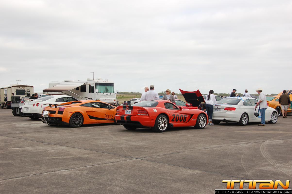 Last week a few of the Titan employees made a pilgrimage to the ‘Texas Mile’, catching a late flight after work we arrived to Houston with a 3 hour drive to our hotel still ahead of us, but the journey is half the fun. We awoke Saturday morning and went downstairs grab breakfast, while there we saw Ryan Woon from Wide Open Throttle Motorsports, Chris Johnson from Performance Motorsport and Cody Phillips. We took the scenic route out to the airstrip where the event is held and saw a few small towns as well as some great back roads that would have been a lot of fun in a faster car (we rented a Dodge Charger).