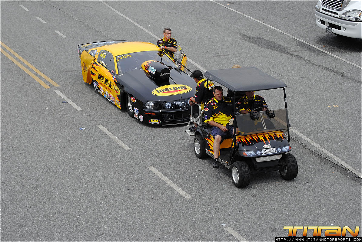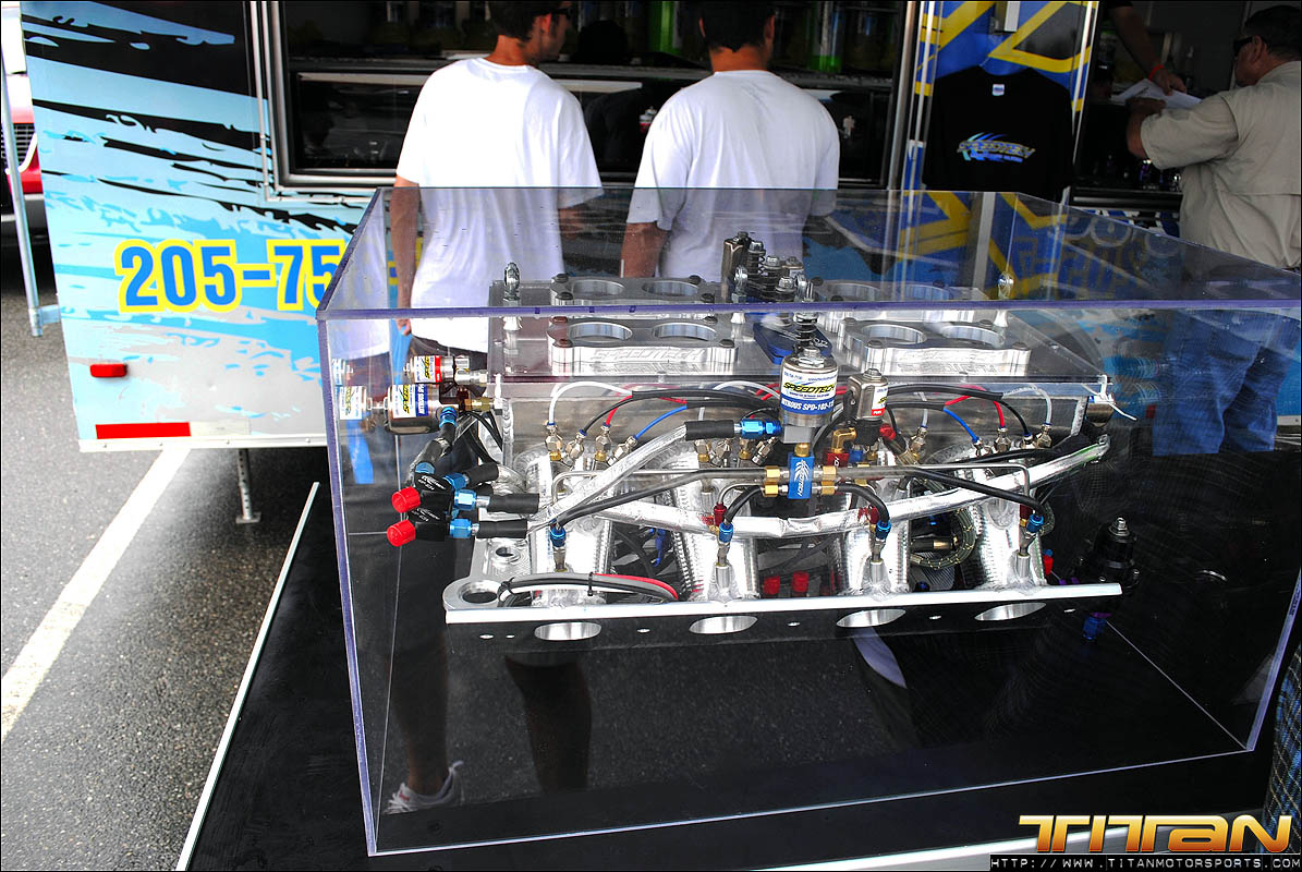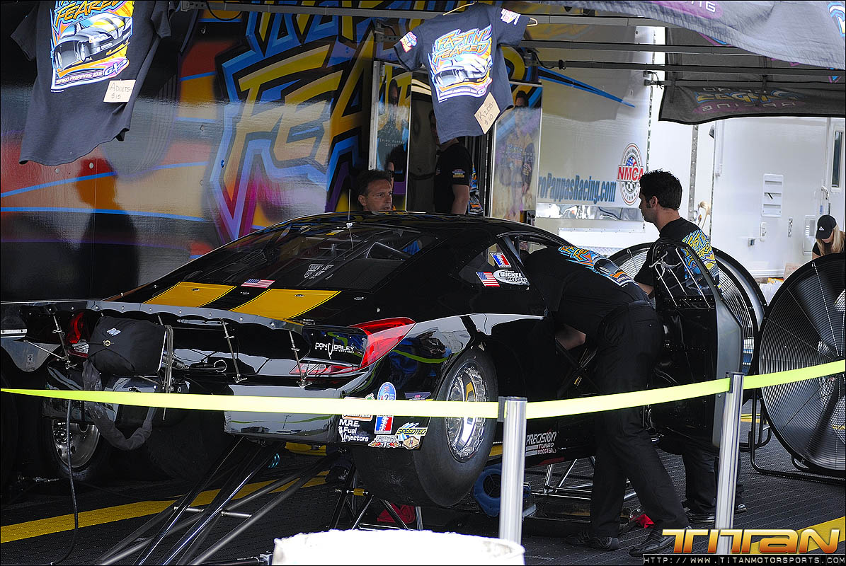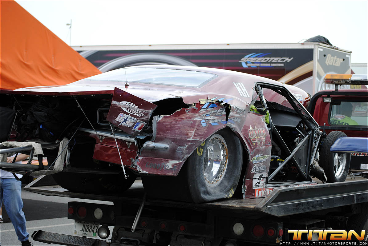 After testing the new tune-up on the air jacks in the pit, Brett and Eric were confident they had resolved the starting line issues that plagued the first 2 qualifying passes. The team gathered their gear and brought the car to the starting line for the final pass of the evening knowing they had made the necessary changes to get the car to go A to B and make the field. Gary being the seasoned professional he is, trusted his crew had resolved the previous rounds issues and staged the car with something to prove. As the car launched past the starting line it was apparent the car was on rails and ready to make a solid pass. As the scoreboard lit up with 3.996 at 182.45 mph, we realized exactly how solid this great pass way! After many long months of trying, Titan Motorsports had made its way into Mickey Thompson 3 Second Club and added another line in the history books. We solidified our position as the fastest import in the world, and the first ever to make a 3 second pass on 10.5 tires.
