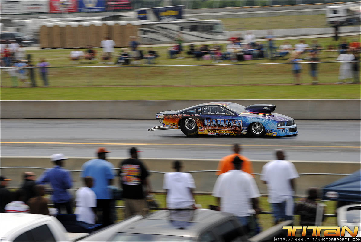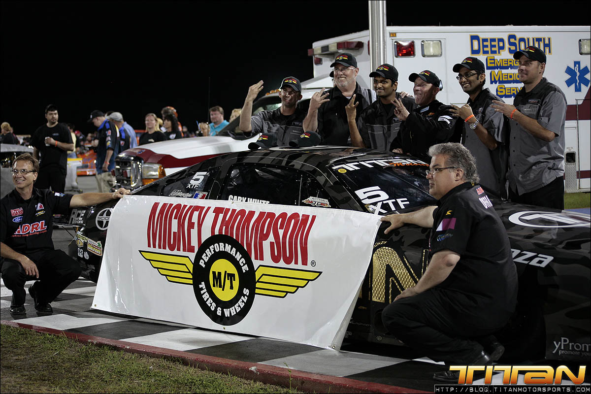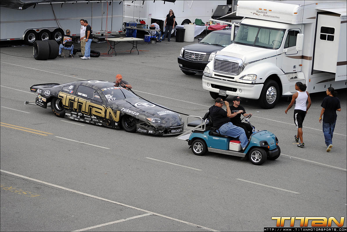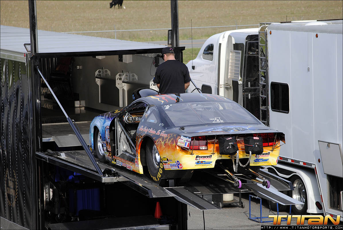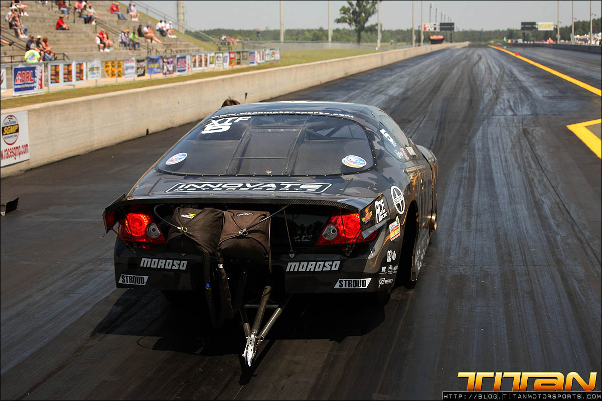 With a Toyota 2JZ 6 cylinder with only 186 cubic inches, many doubted we could be competitive against 800+ ci turbocharged, blown, and nitrous combinations. We set out to prove them wrong, and continue our quest for a 3 second pass. After solid test numbers at Alabama International Dragway last week, driver Gary White and Team Titan were excited to travel to Valdosta for the ADRL Georgia Drags with our Scion Tc. The weekend initially proved to be challenging, the Valdosta track was prepped better than anticipated and new challenges appeared. A mechanical issue appeared in the first qualifying session which caused us to abort the run shortly past the starting line. Crew chiefs Brett White and Eric Luzinski reviewed the data from the run and quickly diagnosed and corrected the gremlin. The second qualifying pass ended much like the first with the car leaving with limited power. Brett again reviewed the engine data and made drastic changes to the tune-up for the last qualifying pass of the night.