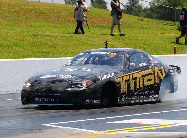 On Saturday’s first round of eliminations, Gary laid down another 3 second run, running a 3.999@185.51 mph to edge out competitor Dwayne Wolfe. In the second round the Titan Scion continued its consistency running a 4.003@186.38mph, good enough to advance past David Hance to the third round. In round three, Gary found himself up against the always competitive Jeff Naiser. Naiser threw down a quick 4.078, but it was Gary who advanced, posting another career best with a 3.956@187.05mph. In the fourth and final round Gary and the Titan Scion found themselves up against another member of the 3 second club, Todd Moyer. Moyer had edged out Gary and the Scion during the finals in Valdosta, so the tensions were high as Titan looked to strike back. Todd was looking good, posting a fast 4.030@194.55mph, but in the end it was Gary claiming the win with his best time yet, an impressive 3.952@186.74mph!