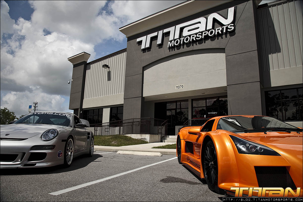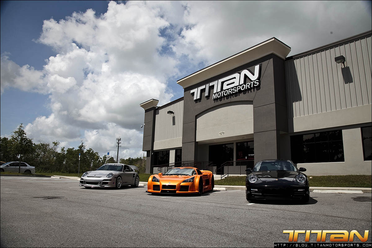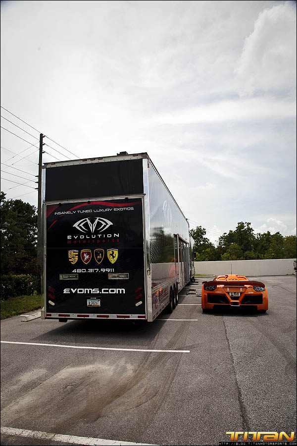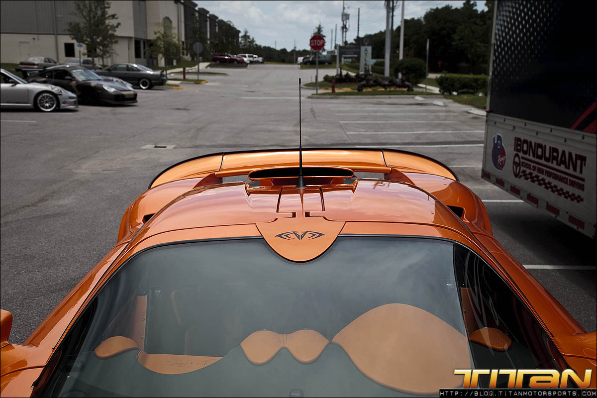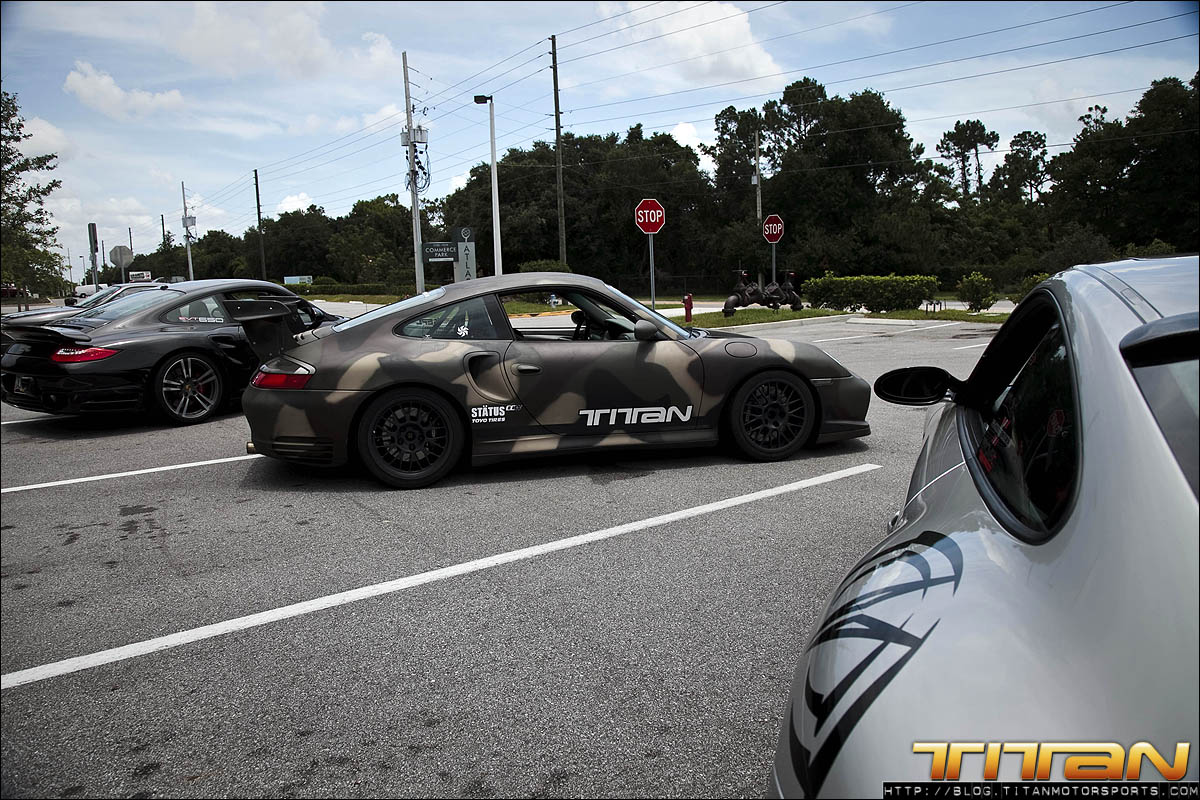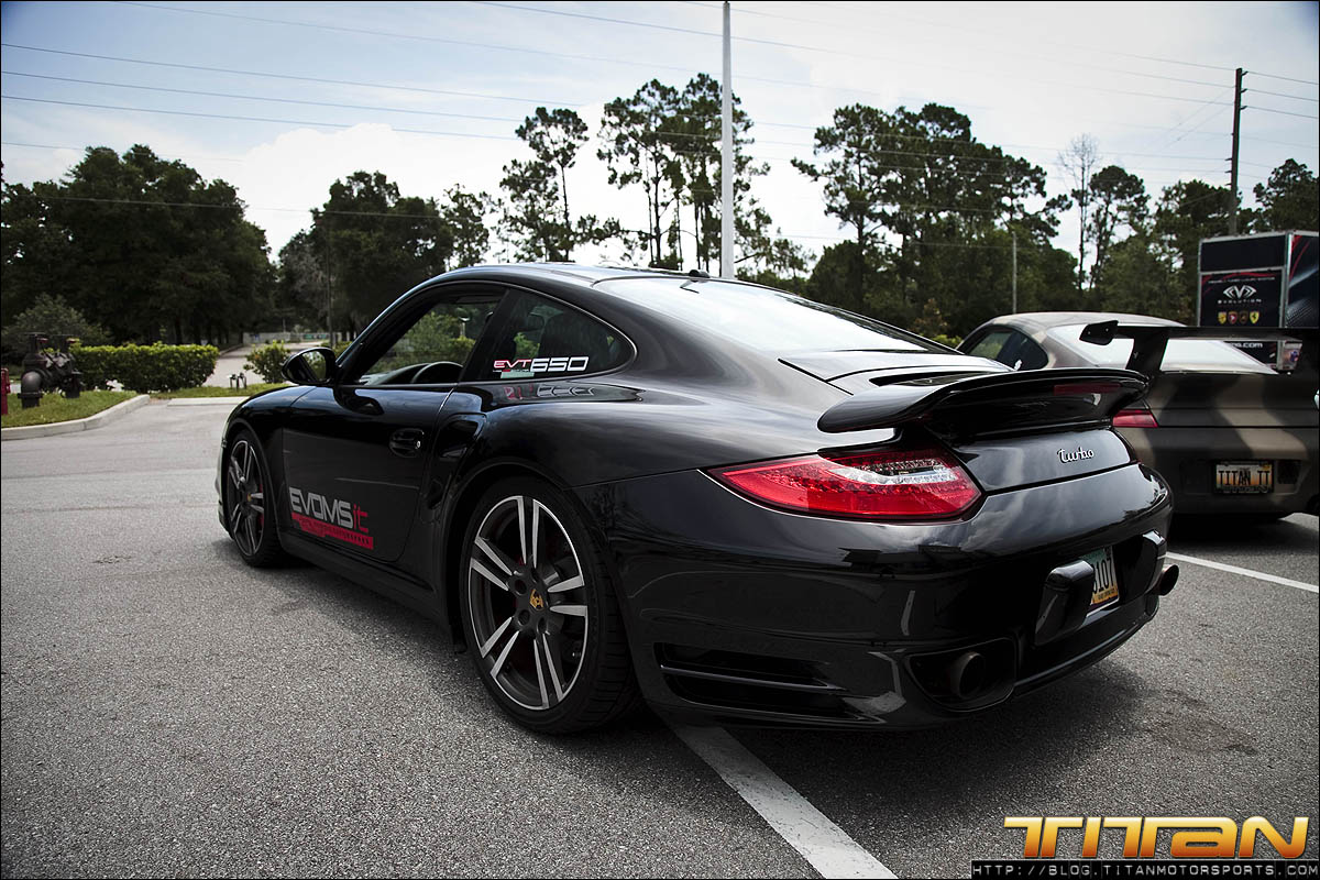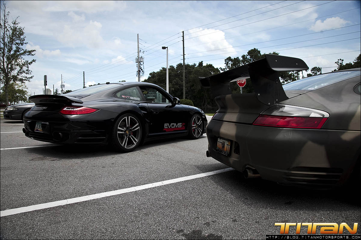 Evolution Motorsports chose Titan Motorsports as the official Orlando stop for their East Coast Summer Tour. After spending a few days in South Florida, the EvoMS crew trucked up the turnpike in their toterhome carrying the EVT650 Porsche 997.2 PDK, EVOT1200 Porsche 997.1, and Gumpert Apollo super car. Todd Zuccone and Matt Carrick kicked off the visit with a seminar for our employees on the history of Evo and their commitment to building only the highest quality Porsche products on the market. We were then treated to a first hand look at some of the great vehicles put together at Evolutions Arizona facility and the precision engineering in their complete tuning packages. I personally enjoyed the EVT650 car, I’ve never been a big fan of automatic sports cars, however the PDK system combined with the additional horsepower provided by Evo upgrade package made for a very fast, responsive car that drove better than stock.