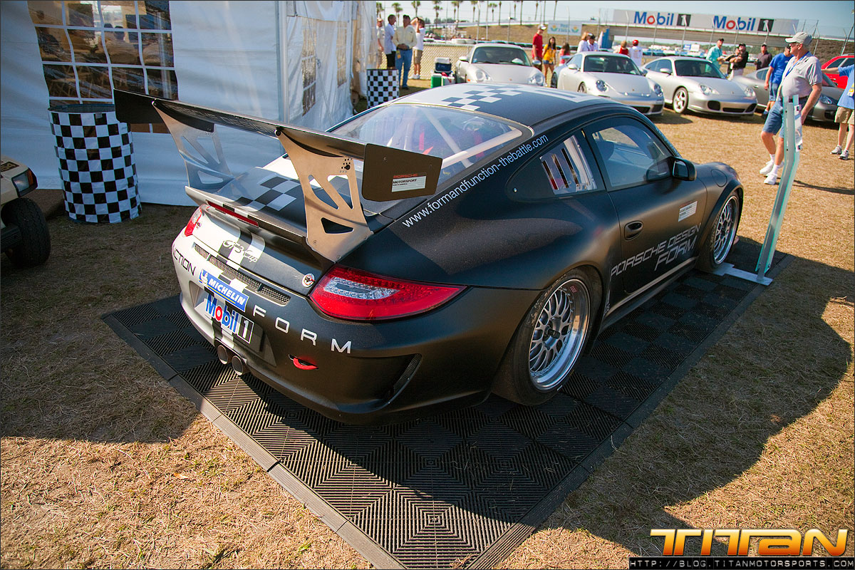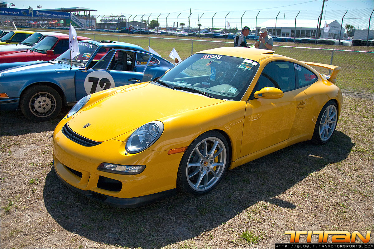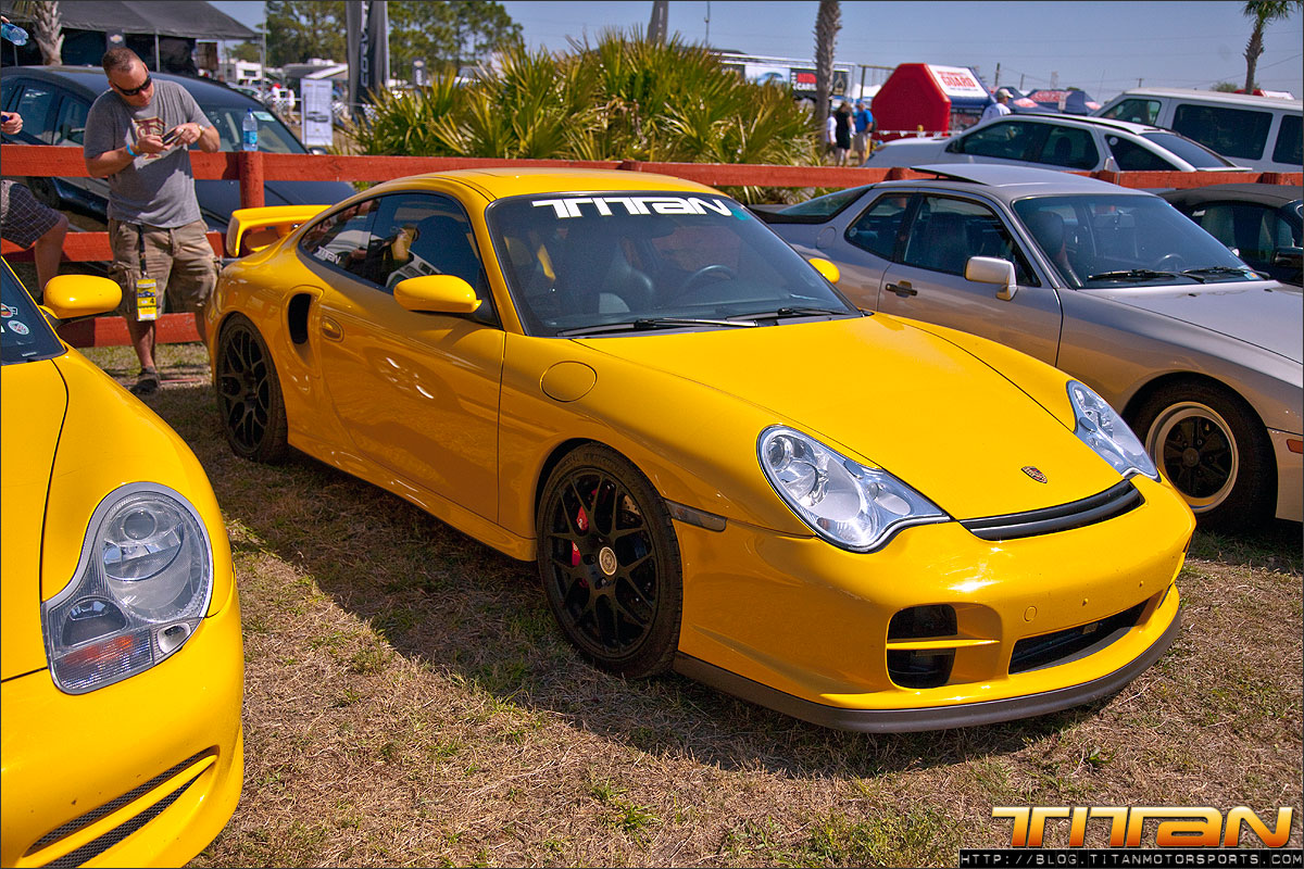 While half our crew was in Houston for the TX2K11 meet, I brought our Speed Yellow Porsche 996tt to the PCA Corral at the ALMS 12 Hours of Sebring race. This annual event marks the start of the American Le Mans and Intercontinental Le Mans series, with teams battling it out on the famed 3.7 Mile course in Sebring Florida. The race is a grueling 12 hours on Sebring’s rough surface, whose concrete foundation has remained primarily untouched since the 50s, making a true challenge for teams sorting out new cars and drivers.