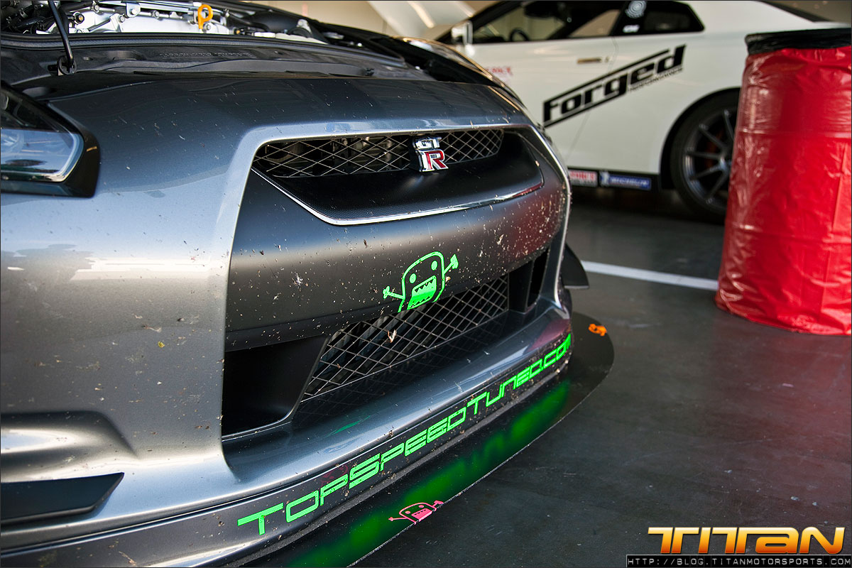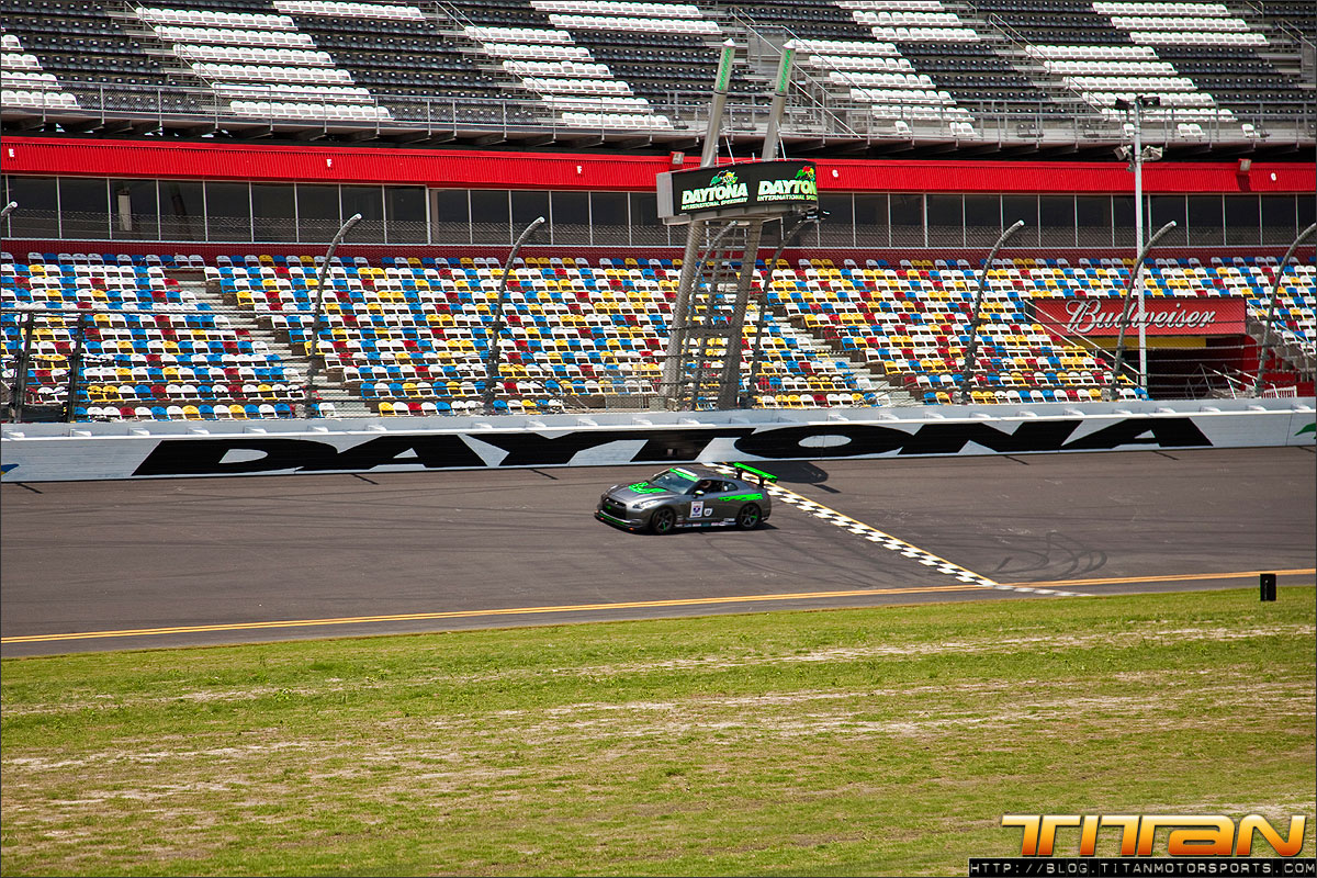 Our good friend Leh Keen was the current leader in Daytona and the favorite to win the event overall. Leh is a professional race car driver who competes in both Grand Am and ALMS. Last year he won the competition in a well prepared 996 GT2, this year he chose to up the ante with a Topspeed prepared GTR. Having seen video and data from their test sessions, I am truly impressed with how this GTR performs. At Daytona the car was turning times within 1-2 seconds of the Rolex 24 race times, on a Michelin Pilot Super Sport Street Tire!