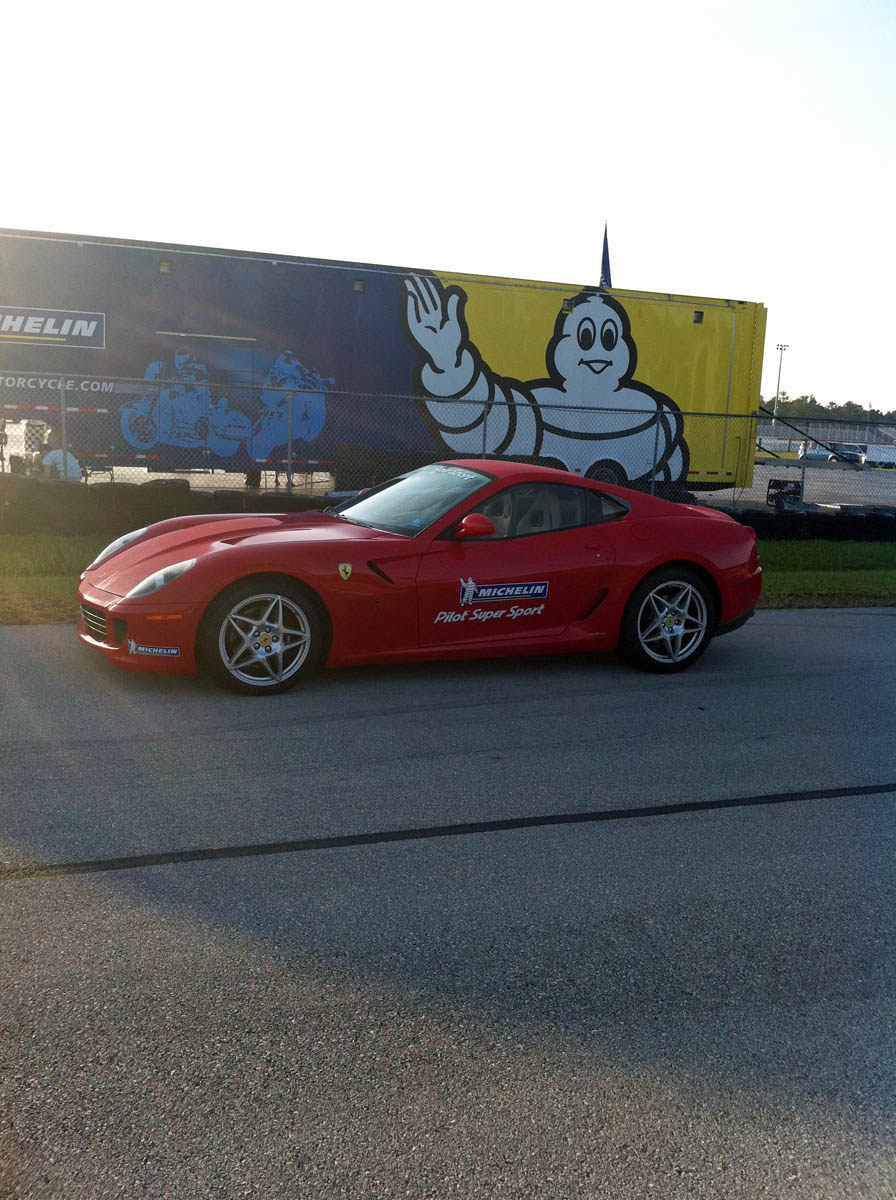 The day was capped of with hot laps in the passenger seat of various hero cars with experienced drivers behind the wheel. There was an array of exotics with fresh Pilot Super Sports on hand not limited to a Ferrari F430, Ferrari 599GTB, Lamborghini LP560, and a Jaguar XKR . I’ve been fortunate to drive each of these cars on the street, and with the addition of forced induction, but still looked forward to getting a feel for them on track. I was amazed at the consistency of the tires and the amount of grip they provided even after hot lap after hot lap with seasoned pros behind the wheel. Most max and extreme performance tires will get hot after 6-8 laps and get greasy, loosing their consistency. The PSS held up like a champ, even in the heavier cars like the 599GTB, a gentleman’s Ferrari designed for Grand Touring. They obviously did not have the grip levels of a slick, however for a tire that could be driven to the track over 500 miles and then flogged all weekend, the performance was better than expected even in these extreme examples.