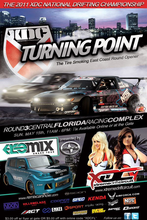 Enjuku Racing brought their S13 over to get tuned on our DynoJet 424 LC2 dyno in preperation for this weekends Xtreme Drift Circuit event. XDC is holding the event at Central Florida Racing Complex, just a few short miles from our shop. The event takes place on Sunday from 11-6PM and will also feature the Remix Car show tour presented by Scion.