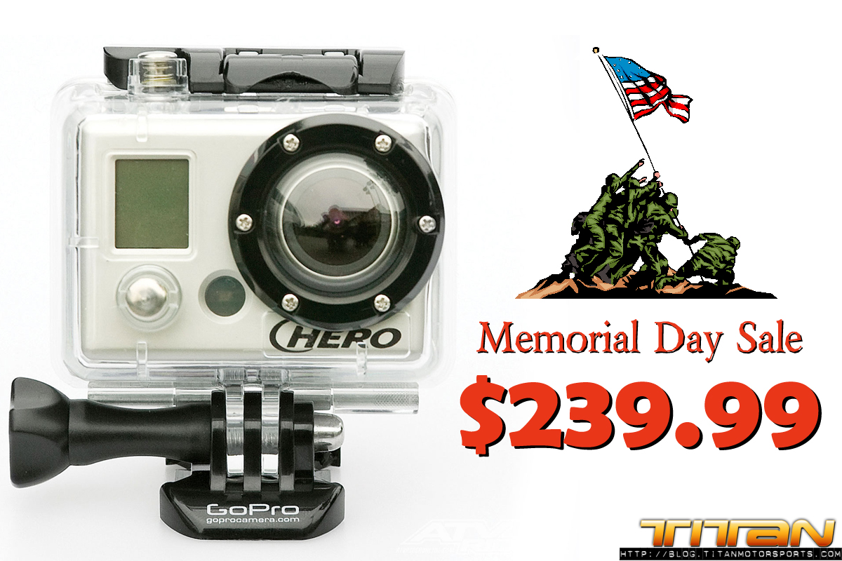 To celebrate the Memorial Day weekend, we are offering discounted prices on many GoPro items including the HD Helmet Hero, HD Motorsports Hero, HD Surf Hero($215.99), and HD Hero Naked ($207.99), to name a few. What better way to catch all the crazy Memorial Day action then with your very own HD GoPro.