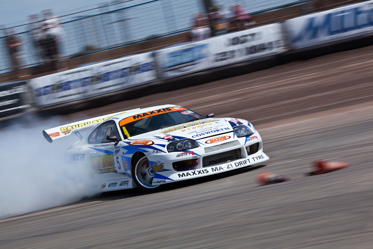 The following morning, the practise session was about to begin, and the team were confident that Mark could get a good score. In his first run, he perfectly drifted around the track, with plumes of smoke emanating from the Maxxis MA-Z1 drift tyres. However, on the last corner, Mark spun. Everyone, from the team to the spectators, was left scratching their heads at such an uncharacteristic display.