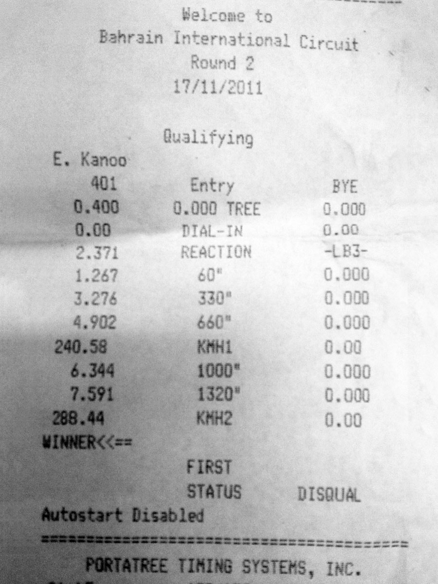 Ebrahim Kanoo and E.Kanoo Racing, with the help of Titan Motorsports and Shane T tuning, set a new world record for the worlds quickest IRS Supra today with a 7.591 @ 179mph pass in Bahrain. This pass was completed using the factory Toyota independent rear suspension using a Titan Motorsports 2JZ race engine tuned by Shane Tecklenburg. The team also just received their new 3/4 chassis Supra built by Titan Motorsports and looks forward to further testing and record setting with it.