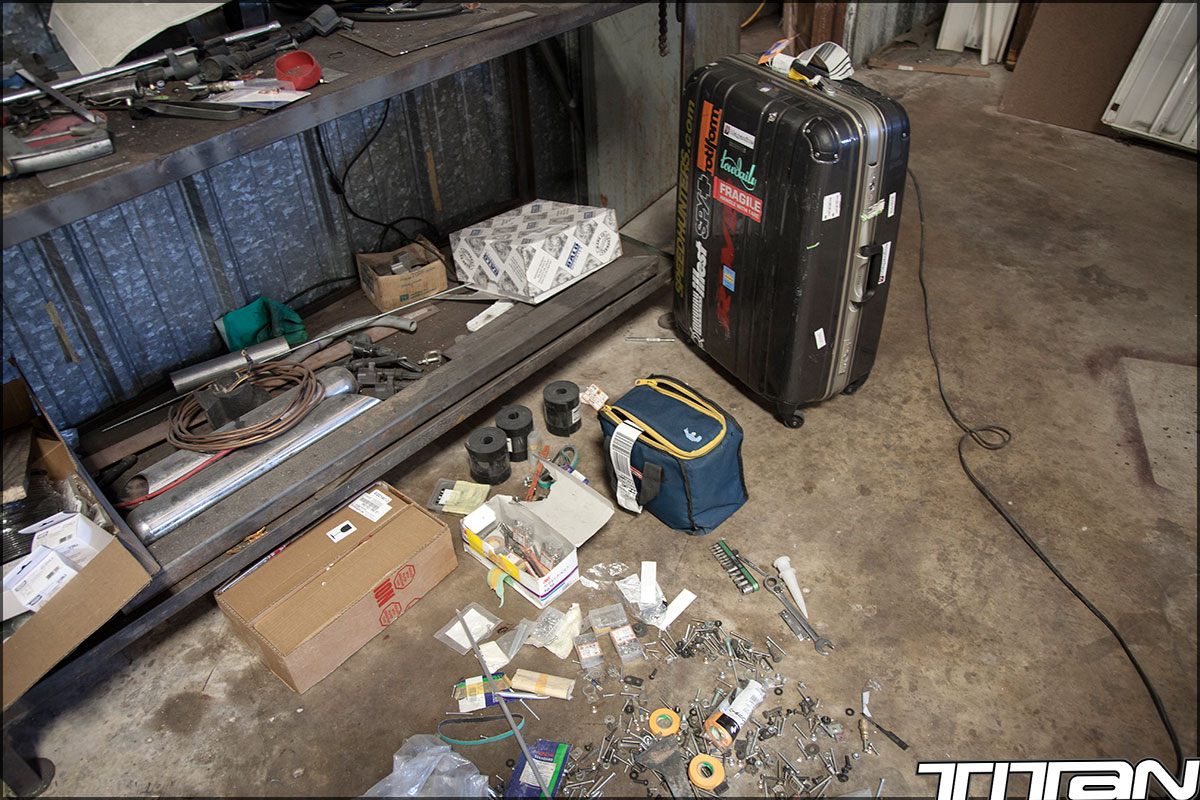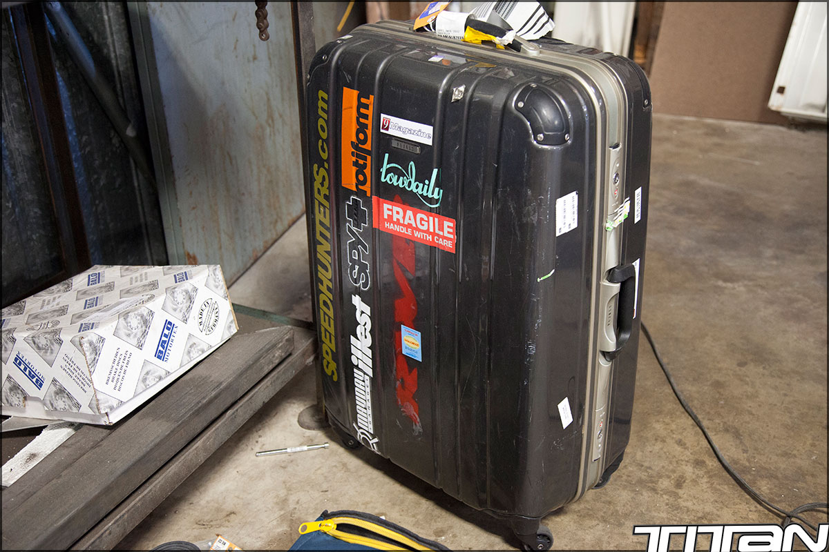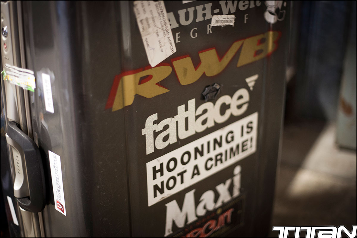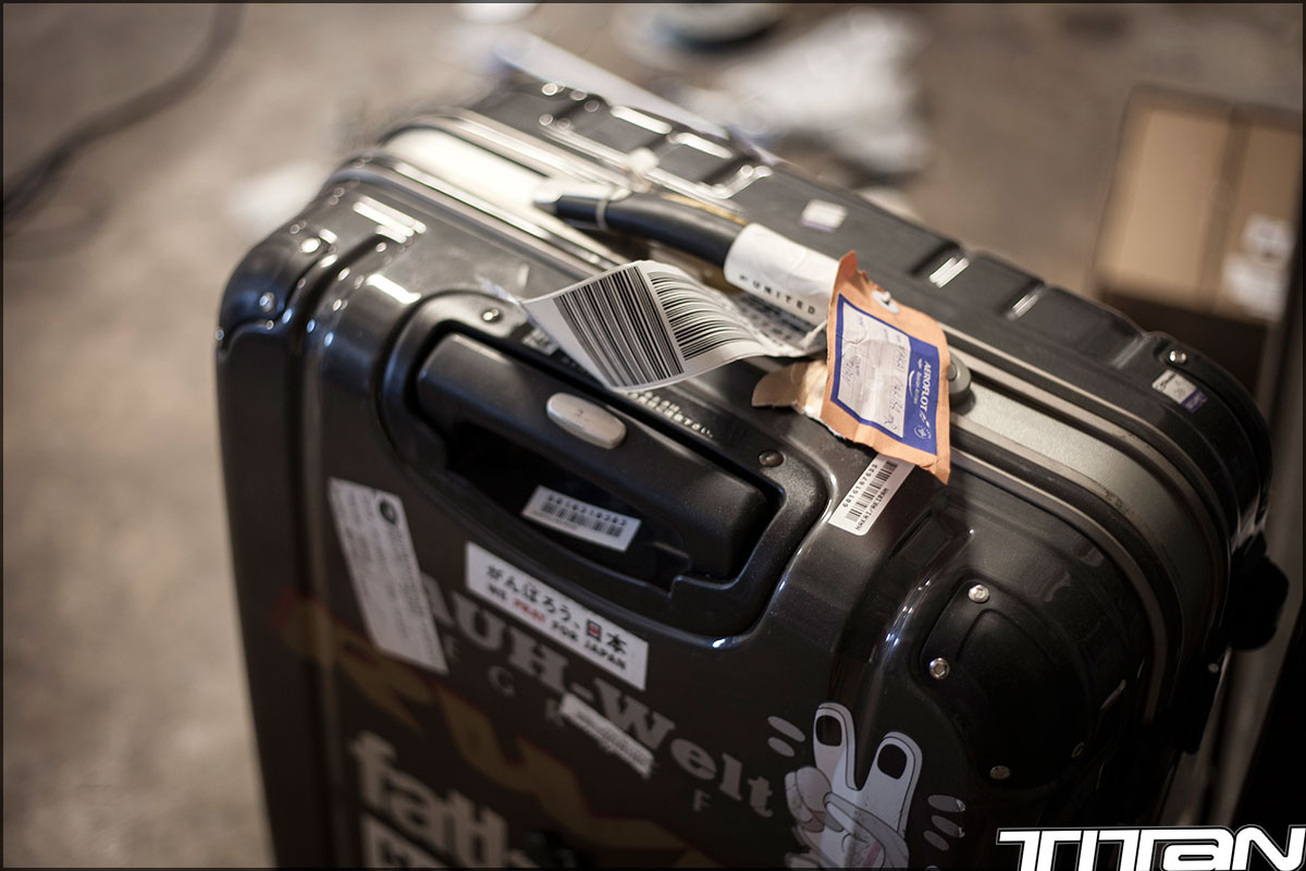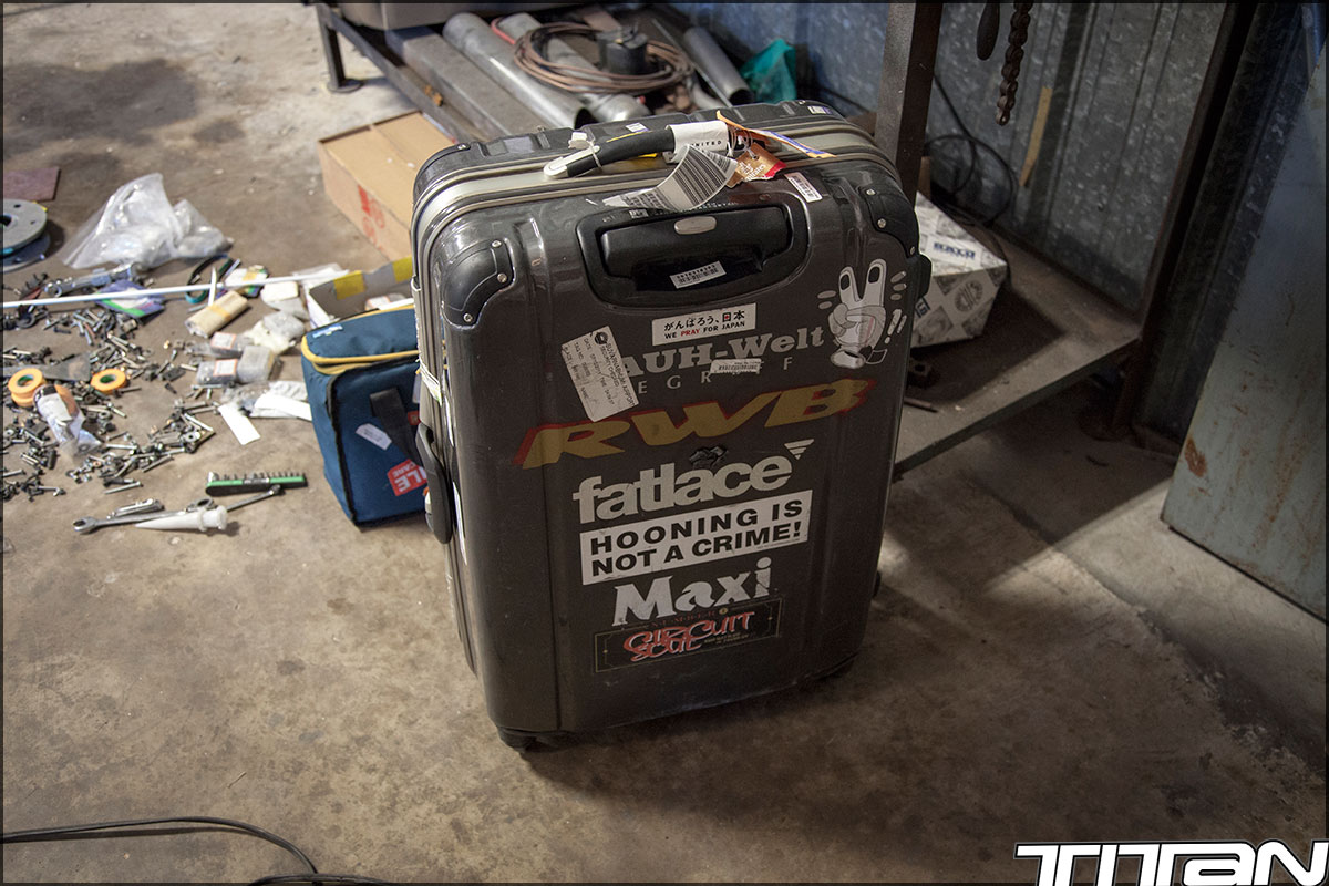 There was some question as to what tools would need to be provided for the build. Nakai got off the plane with this suitcase filled with many nuts, bolts, tools, basically anything he would need to complete the car as if he were at his home workshop. It’s also wild to see the shop stickers and airport tags documenting his travels across the world creating RWB Porsches.