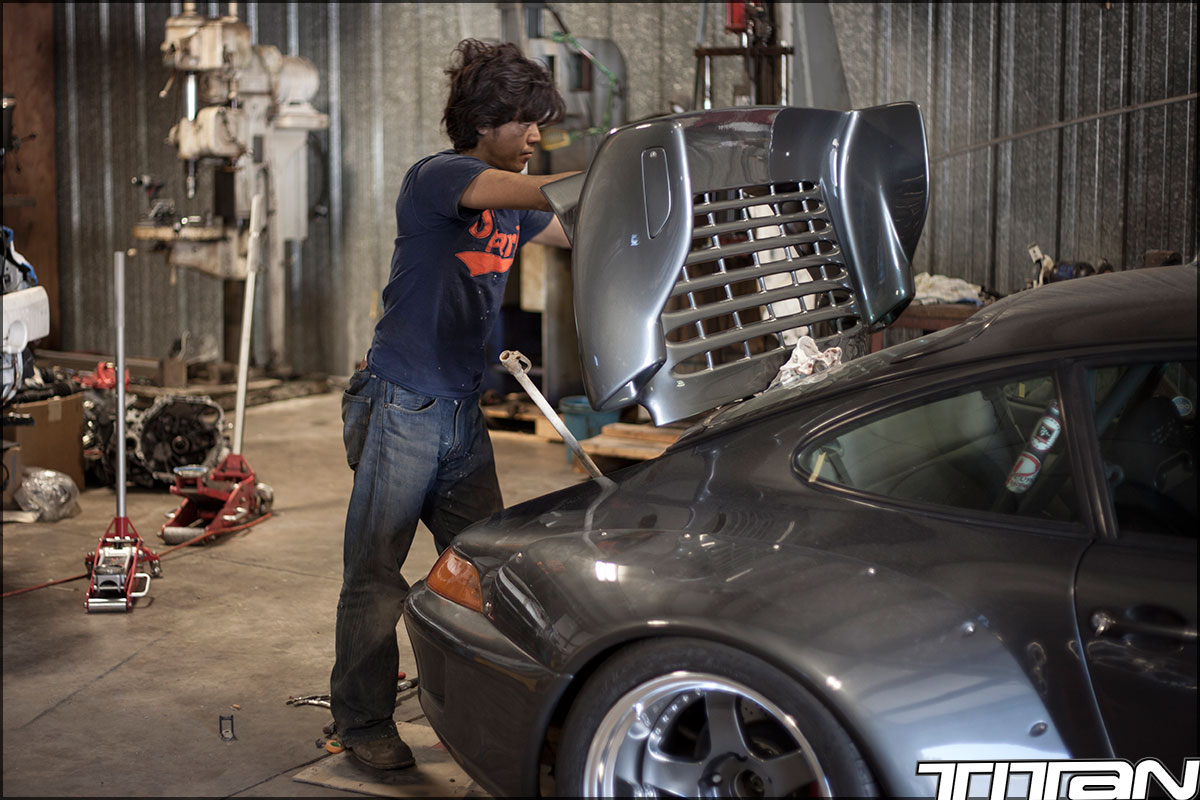 Nakai’s work ethic is second to none, he spends countless hours finessing the car making sure it’s perfect. Even when he is not physically working on the car, he’s standing close by focusing on it piece by piece with a cigarette in hand. His passion for building these cars is very apparent, he is not a fancy man by any means. On this particular build he arrived in an economy rent a car and rather than sleep in a fancy hotel he chose to sleep outside of the shop in Chad’s car hauler so that he could work late into the night. There were no elaborate 5 star dinners either, meals consisted of a quick trip to McDonalds or the local Denny’s. As fancy as we got was Logan’s Texas Steakhouse last evening where we shared stories of Porsches, travel, racing, and of course the history of RWB. There is definitely a language barrier, but it’s easy to work through it thanks to Nakai’s great understanding of the English language, I can’t think things would have gone as smoothly if the roles were reversed. Many question the pricing of the kits and what goes into the installation, but anyone who has seen the man in the process of installation will understand that he’s not just transforming the appearance of the car, he’s giving it a new soul.