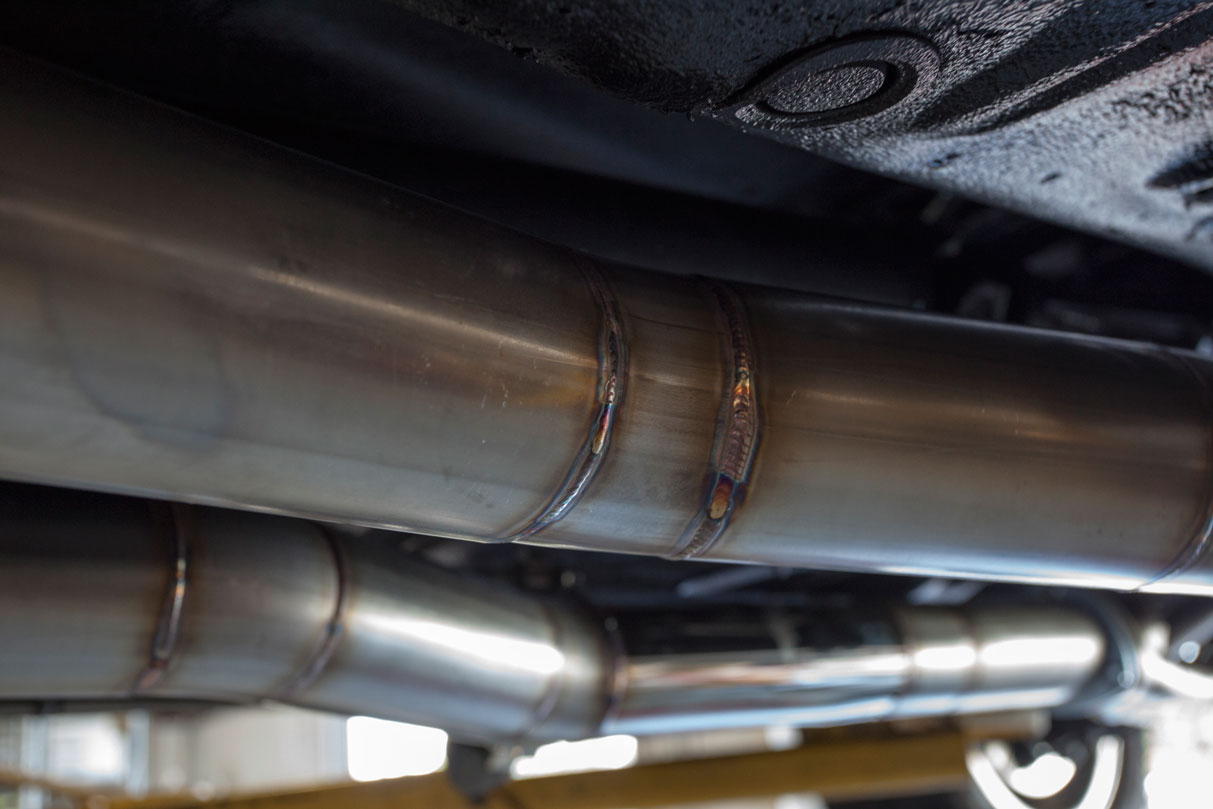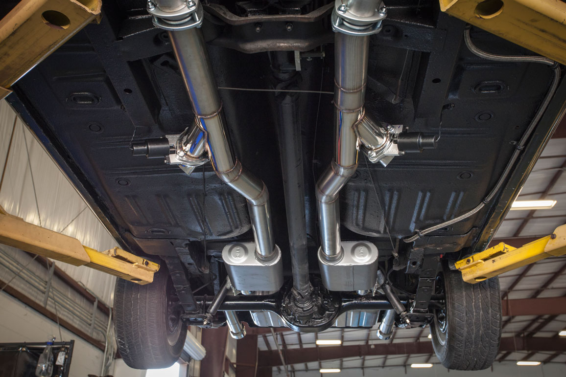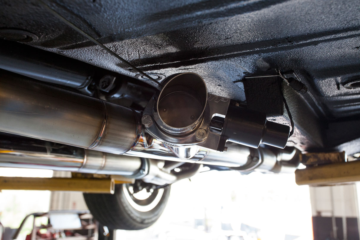 Most know Titan Motorsports for our wild turbo charged imports, but our fabrication department works on a wide scope of vehicles whose owners are in search of exclusive one off performance parts. Case in point our good friend Ajay from Daya’s Custom Auto needed a custom exhaust for a 67 Mustang he’s been restoring for himself over the last 1-2 years. Given Ajay’s eye for perfection he needed a custom exhaust setup that would match the high quality restoration already in progress and make sure the small block Ford power plant could breath properly and produce the horsepower needed to shred the tires on the 67. Starting with a box full of mandrel bent 3 inch stainless steel straights and 90s, we built a custom exhaust setup featuring QTP Electronic Cutouts and high flow mufflers. The QTP exhaust cutouts allow a set of valves to be electronically controlled from the cockpit which route the exhaust gas either from a dump valve just past the header or out the back through a set of high flow mufflers. The results is a quality exhaust that will stand the test of time, and allow Ajay to wake it up on the weekends at the press of a button or cruise quietly out the neighborhood without becoming enemy number 1 of his HOA. With our in house fabrication department we can build custom headers and exhaust systems for any vehicle and tailor the fitment and sound to the owners exact specifications.