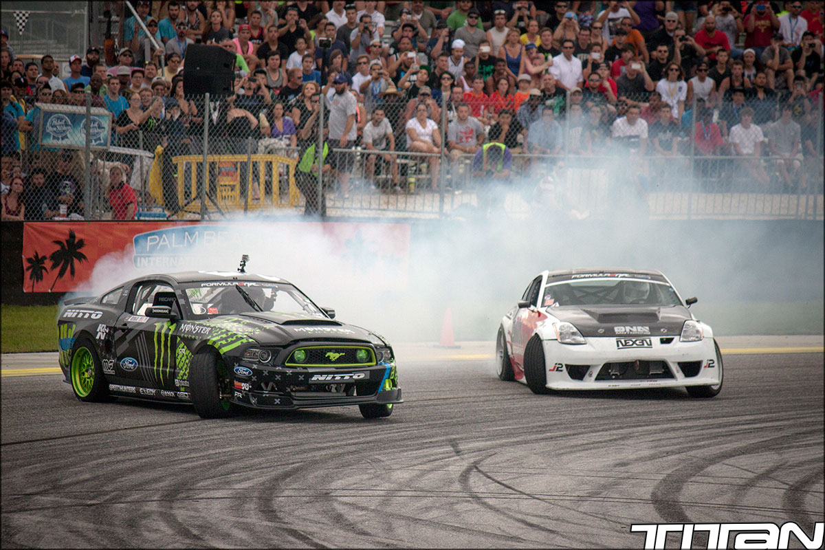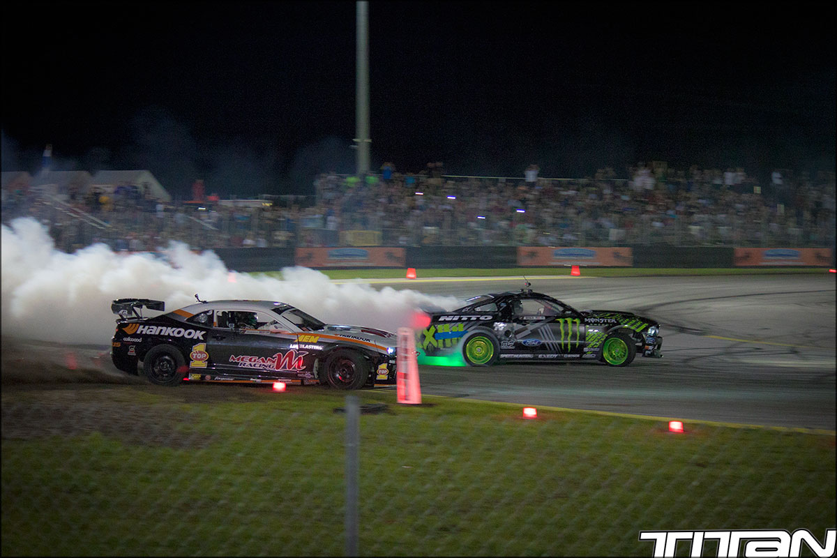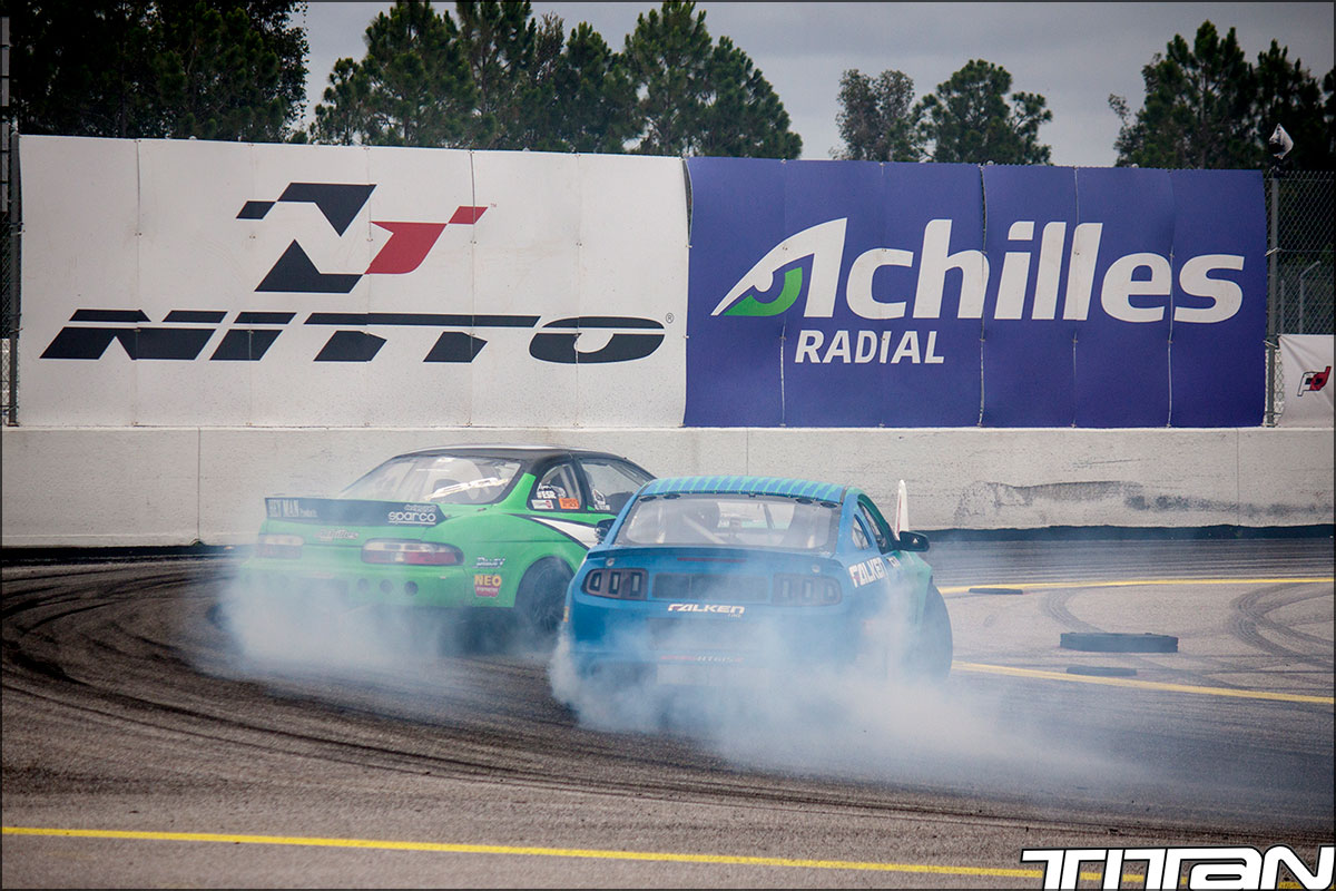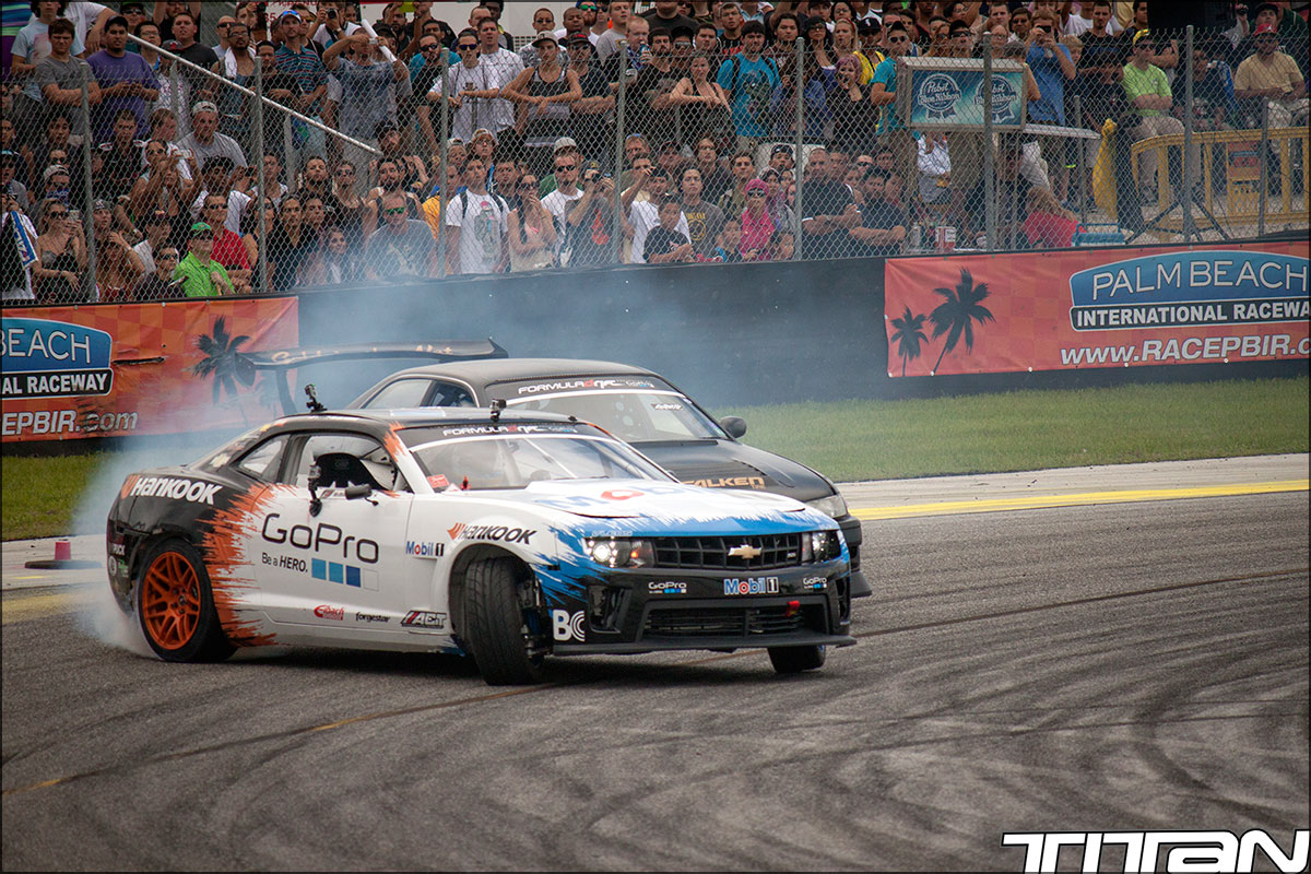 Formula Drift invaded Palm Beach International Raceway this weekend as thousands of fans filled every inch of space surrounding the drift circuit. We’ve been closely following drifting for years and enjoy checking out the competition all while visiting with some of our old drag racing competitors. There was plenty of action and controversy throughout the event with the fans questioning many of the judges calls and quite a bit of contact within the runs. In the end Michael Essa took the top spot in his E46 BMW (you may remember his Z4 car from his visit to the shop prior to last years event) flanked by the Achilles Tires entrants of Daigo Saito and Robbie Nishida. The podium was swept by turbocharged 6cylinder entrants,could we possibly be seeing a changing of the guard in FD with turbocharge entrants becoming the norm over the previous V8s? Who knows, but we like what we saw and always have our door open to the possibility of building a wild Formula Drift competitor here at Titan Motorsports, sponsors and manufactures our number is listed on the site. A big thanks to Cheralyn and the Bridges Racing (Achilles Tires) Team for the great hospitality all weekend.