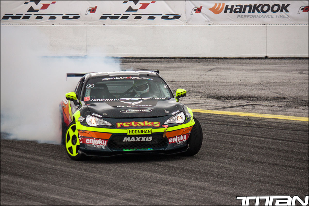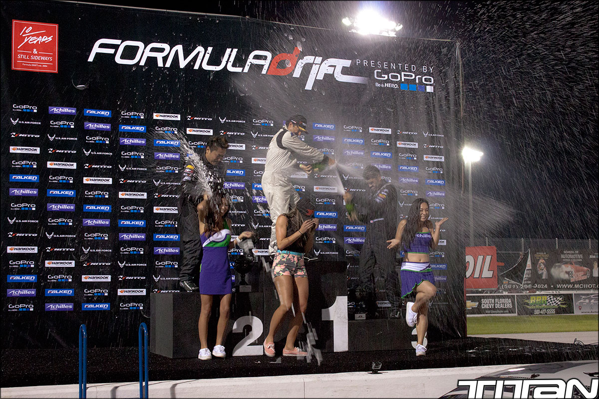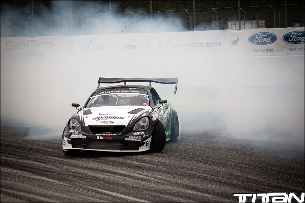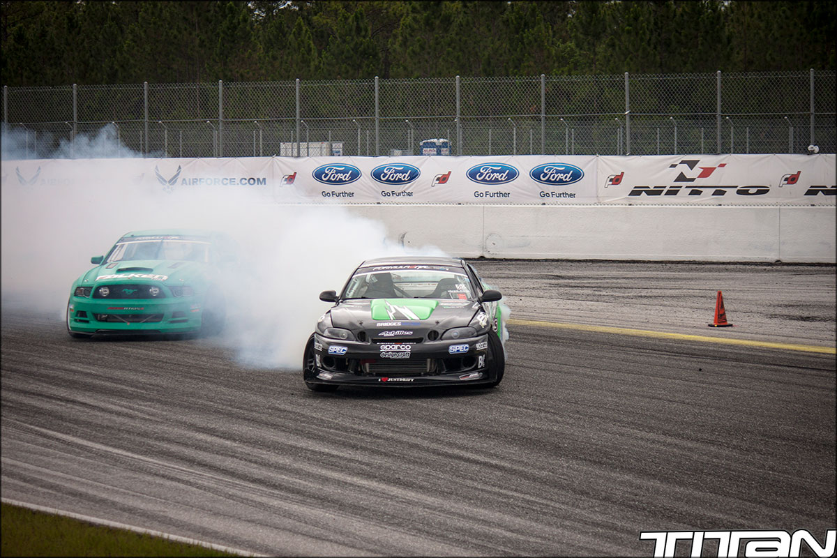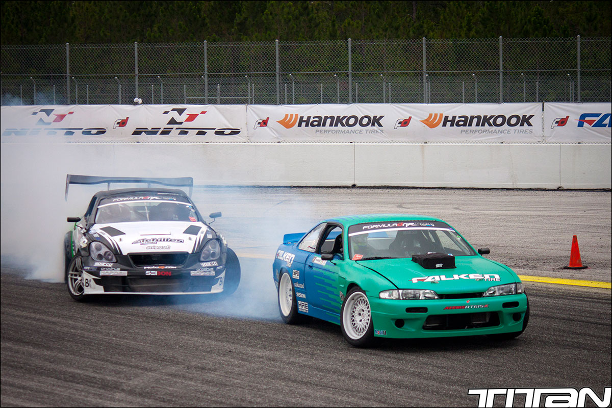 Formula Drift invaded Palm Beach International Raceway this weekend as thousands of fans filled every inch of space surrounding the drift circuit. We’ve been closely following drifting for years and enjoy checking out the competition all while visiting with some of our old drag racing competitors. There was plenty of action and controversy throughout the event with the fans questioning many of the judges calls and quite a bit of contact within the runs. In the end Michael Essa took the top spot in his E46 BMW (you may remember his Z4 car from his visit to the shop prior to last years event) flanked by the Achilles Tires entrants of Daigo Saito and Robbie Nishida. The podium was swept by turbocharged 6cylinder entrants,could we possibly be seeing a changing of the guard in FD with turbocharge entrants becoming the norm over the previous V8s? Who knows, but we like what we saw and always have our door open to the possibility of building a wild Formula Drift competitor here at Titan Motorsports, sponsors and manufactures our number is listed on the site. A big thanks to Cheralyn and the Bridges Racing (Achilles Tires) Team for the great hospitality all weekend.