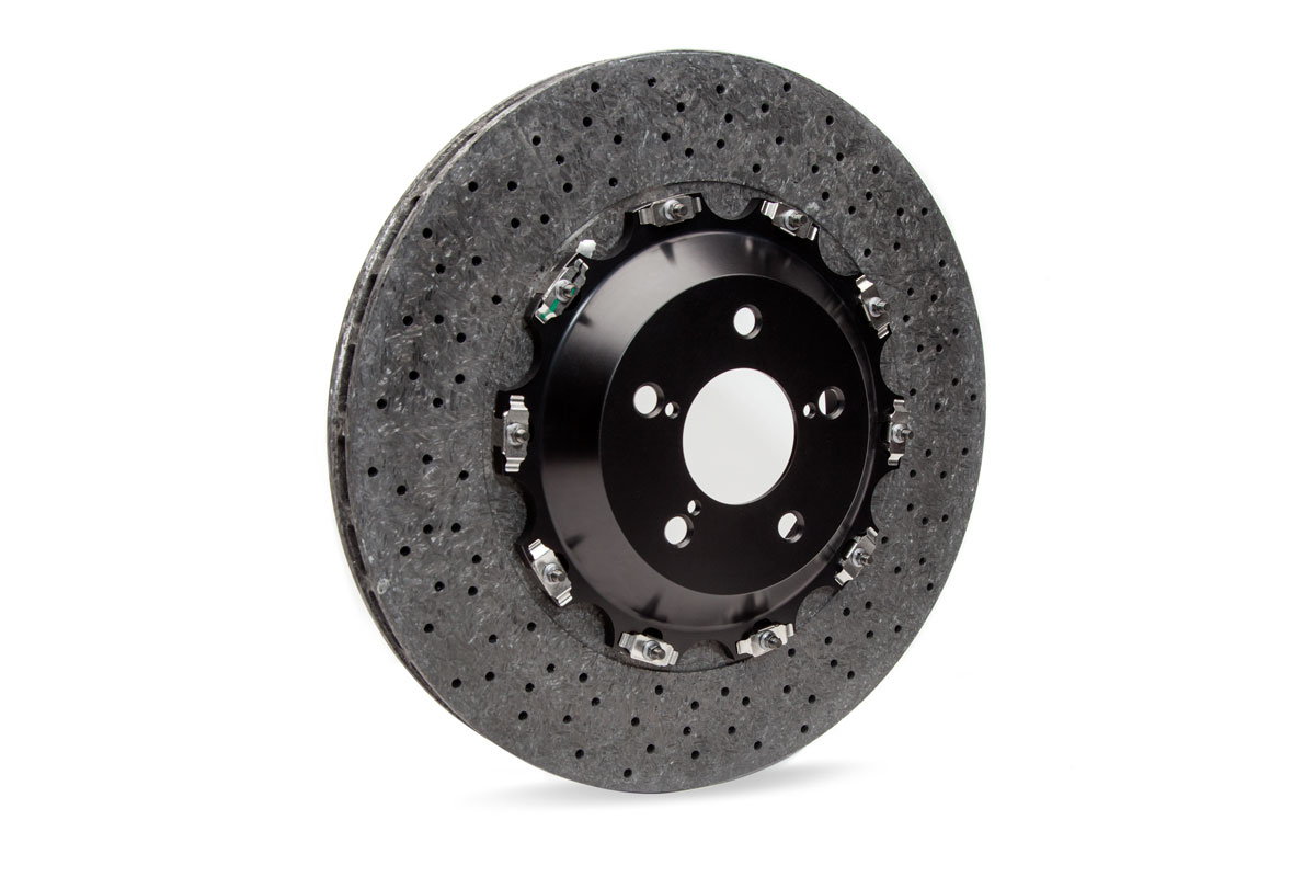 With our carbon ceramic brake upgrade, over 60lb is removed in rotational mass. As important as the 60lbs is to the gross vehicle weight, a reduction in rotational mass improves acceleration and reduce drivetrain stress. These brakes also offer improved stopping power over the stock steel rotor setup, without the increased squeal that occurs when using steel brakes and race pads. This setup works perfect for nearly any type of performance driving, from the street to the strip to the runway these brakes offer improved performance across the board.
