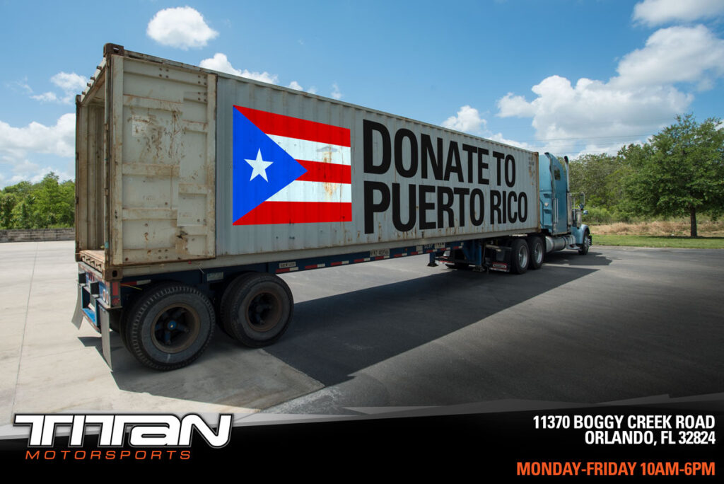 Titan Motorsports will be offering our warehouse as a drop off site for good and humanitarian items to be shipped to the people of Puerto Rico. We have obtained a 40-foot container and pre-arranged multiple deliveries to help expedite the process of getting the goods to those affected. We will be coordinating the drop off with FEMA to make sure that the aid reaches parties in need as quickly as possible. Items can be dropped off at our SHOWROOM located in the front of our building at 11370 Boggy Creek Orlando, FL 32824 from Monday – Friday 10AM-6PM. For larger donations, we ask that you please ask for assistance from our staff in the showroom and they will arrange for a warehouse representative to collect and load the goods into the container. We will collect items for the next 2 weeks, if you’ve been wanting to help our fellow Americans in Puerto Rico recover from this disaster take a look at the list of needed items below and bring what you can to our location.